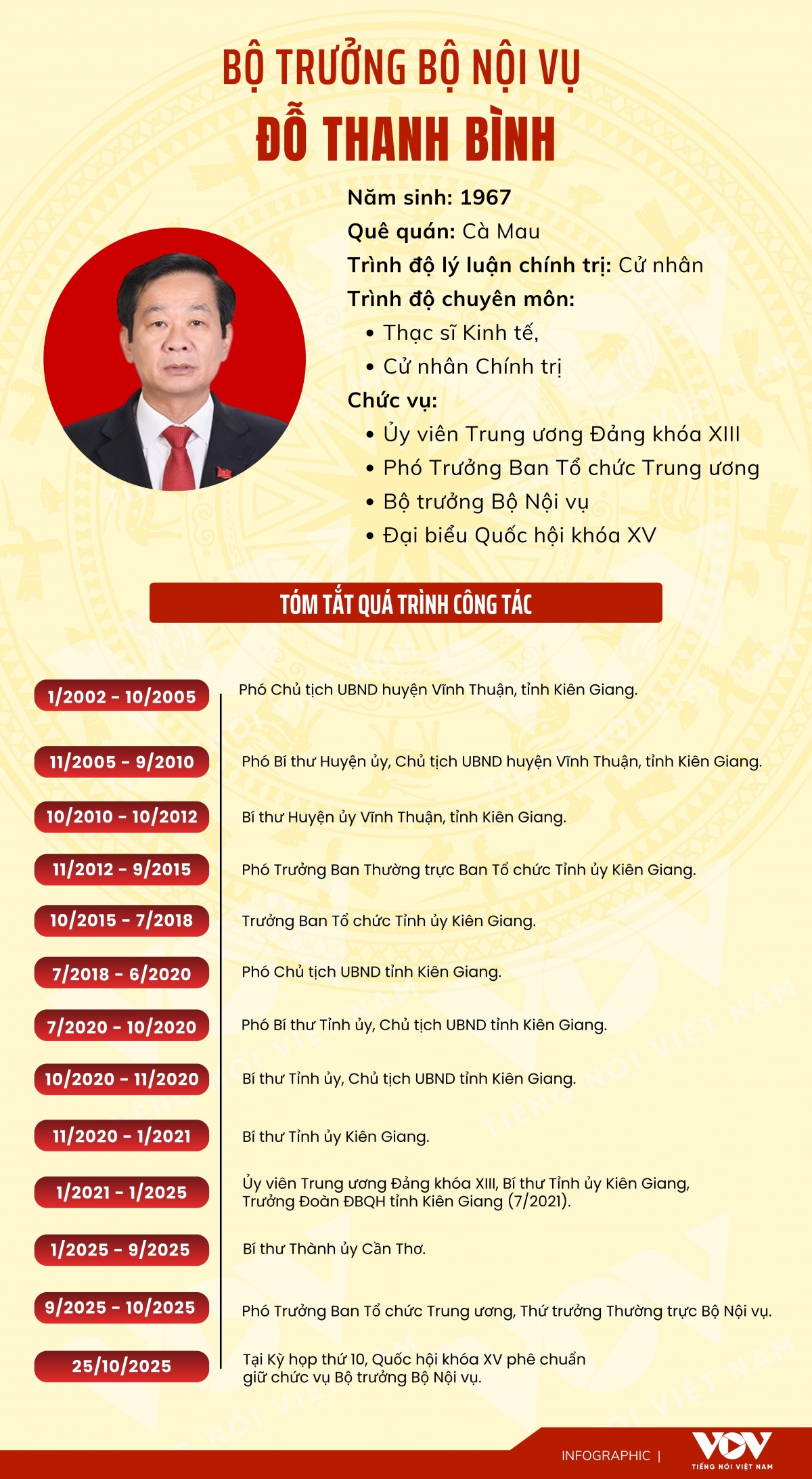 VOV.VN - Ngày 25/10, Quốc hội khóa XV phê chuẩn bổ nhiệm ông Đỗ Thanh Bình – Thứ trưởng Thường trực Bộ Nội vụ giữ chức Bộ Trường Bộ Nội vụ nhiệm kỳ 2021-2026. Thủ tướng Chính phủ cũng đã trao quyết định bổ nhiệm đối với ông Đỗ Thanh Bình.