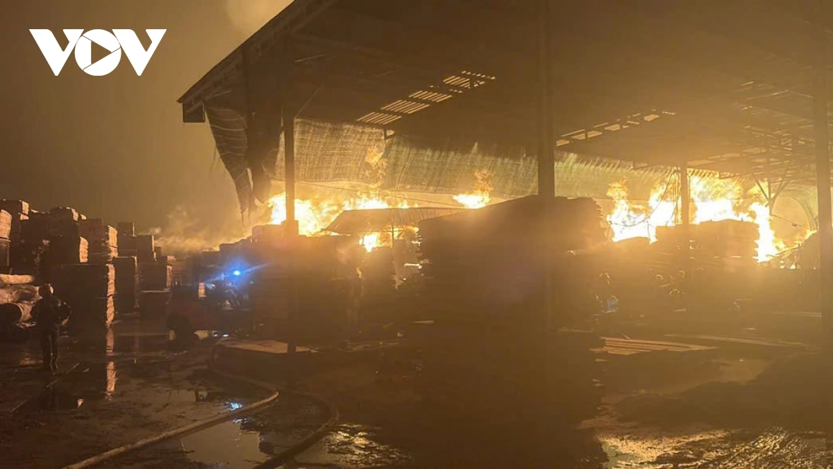 Theo lực lượng PCCC-CNCH, khi tiếp cận hiện trường, đám cháy đã phát triển trên diện tích lớn, lan nhanh sang khu vực nhà xưởng, nhà kho và sân bãi ngoài trời do có nhiều hàng hóa, vật liệu dễ cháy (gỗ) nên gây khó khăn cho công tác dập lửa.