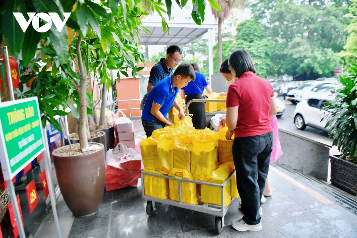 Chi đoàn Báo Điện tử Tiếng nói Việt Nam cùng Bệnh viện Thanh Nhàn vận chuyển các món quà đến khoa nhi