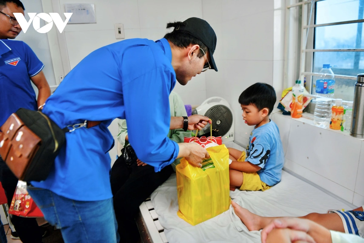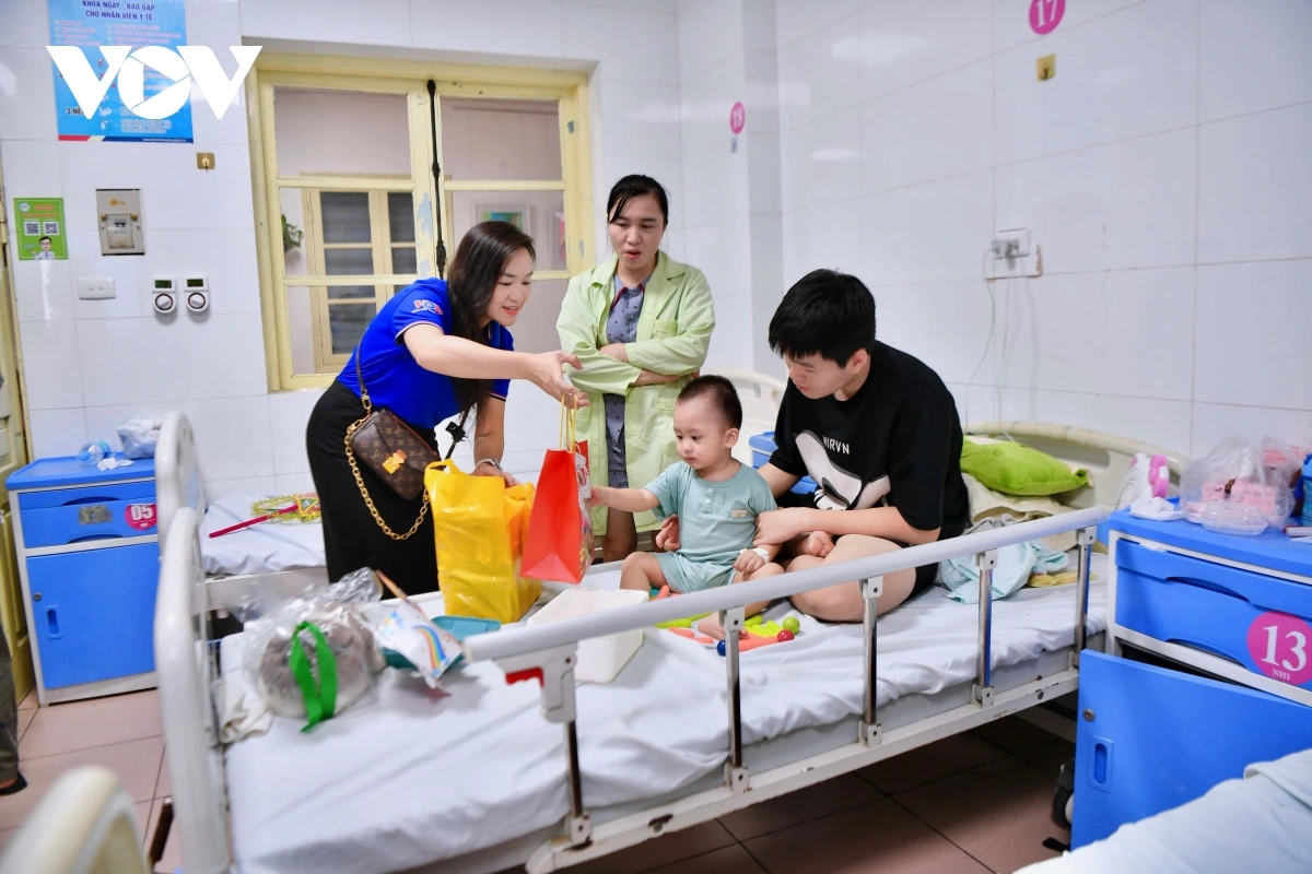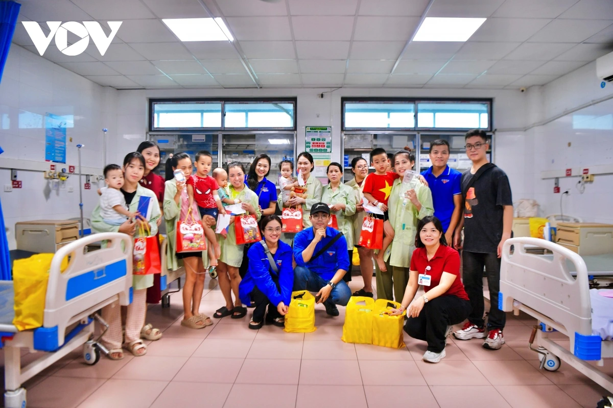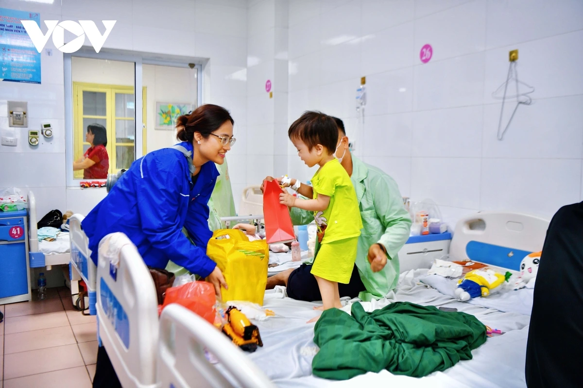 VOV.VN - Sáng 6/10, Chi đoàn Báo Điện tử Tiếng nói Việt Nam phối hợp cùng Công ty Cổ phần Sữa Việt Nam (Vinamilk) và nhóm từ thiện TTG đã tổ chức chương trình trao quà Trung thu cho các bệnh nhi đang điều trị tại Bệnh viện Thanh Nhàn (Hà Nội).