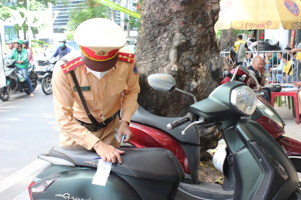 Tổ công tác của CSGT TP Hà Nội xử lý vi phạm tại tuyến đường Nguyễn Tuân