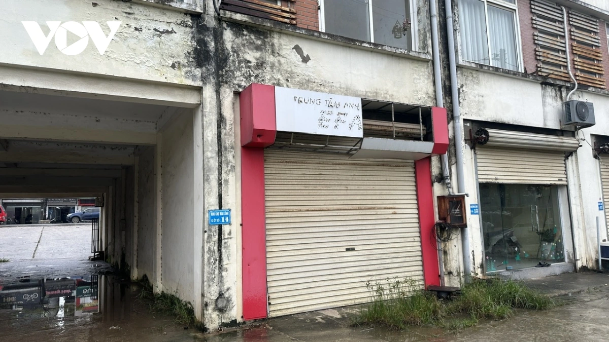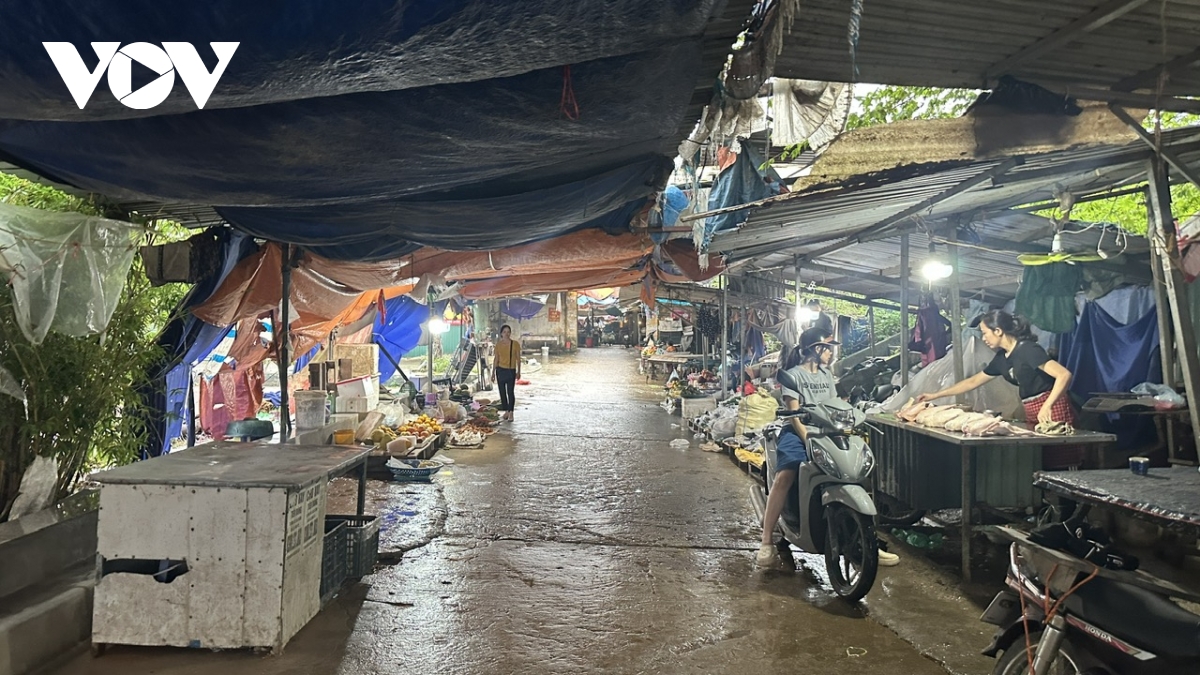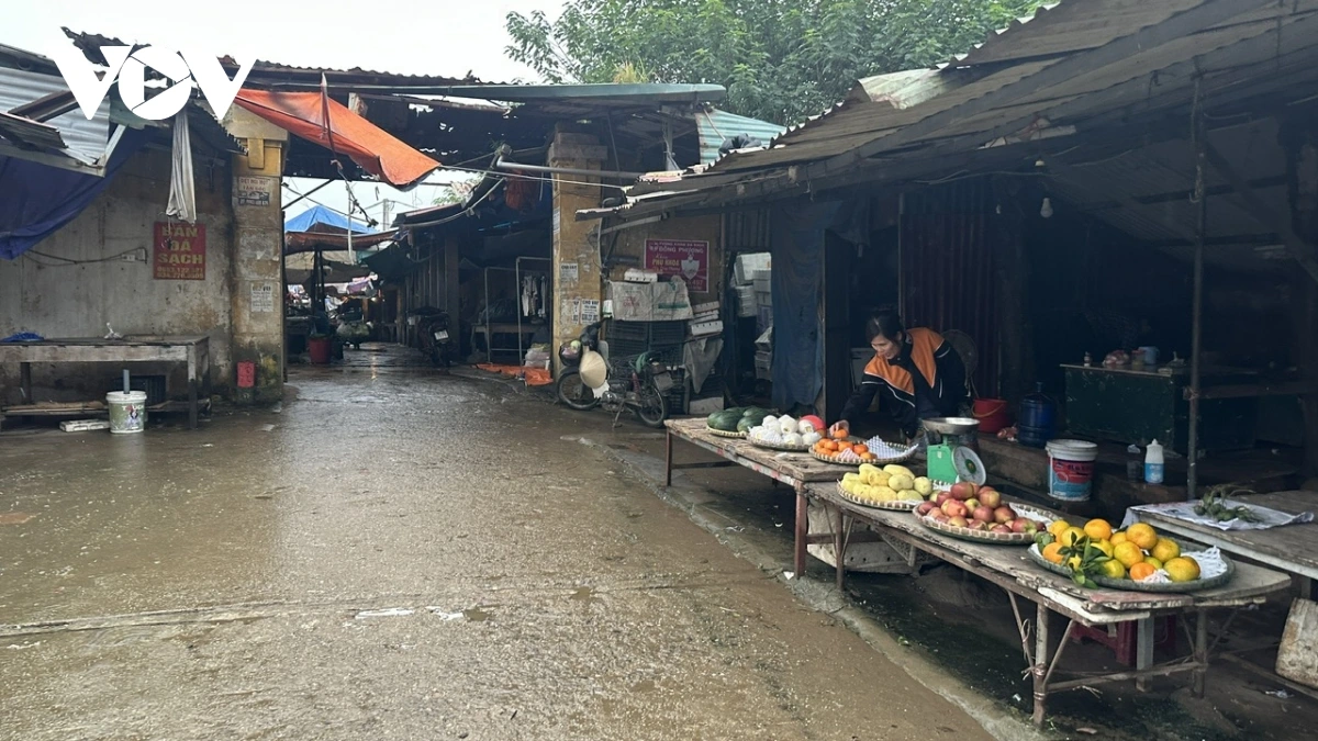 Chợ không một bóng người ra vào, cỏ mọc um tùm.