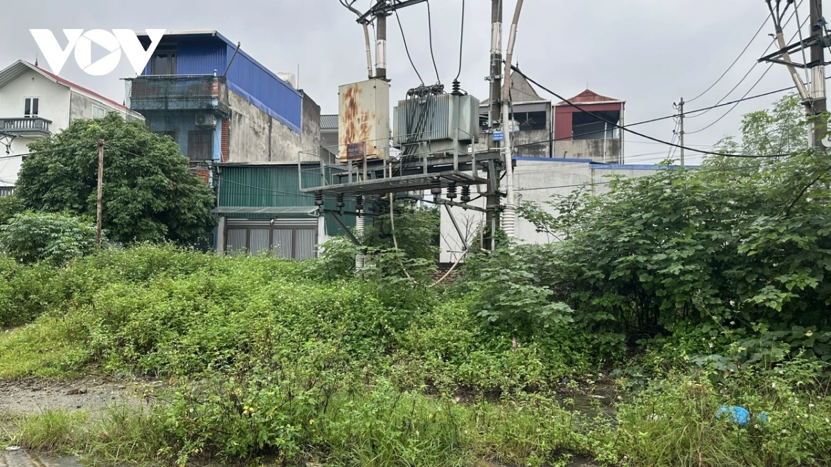 Hệ thống điện nằm trong khu chợ rỉ sét, cây dại mọc um tùm.