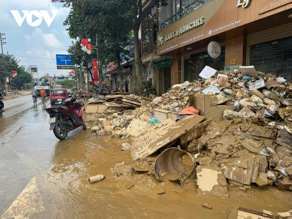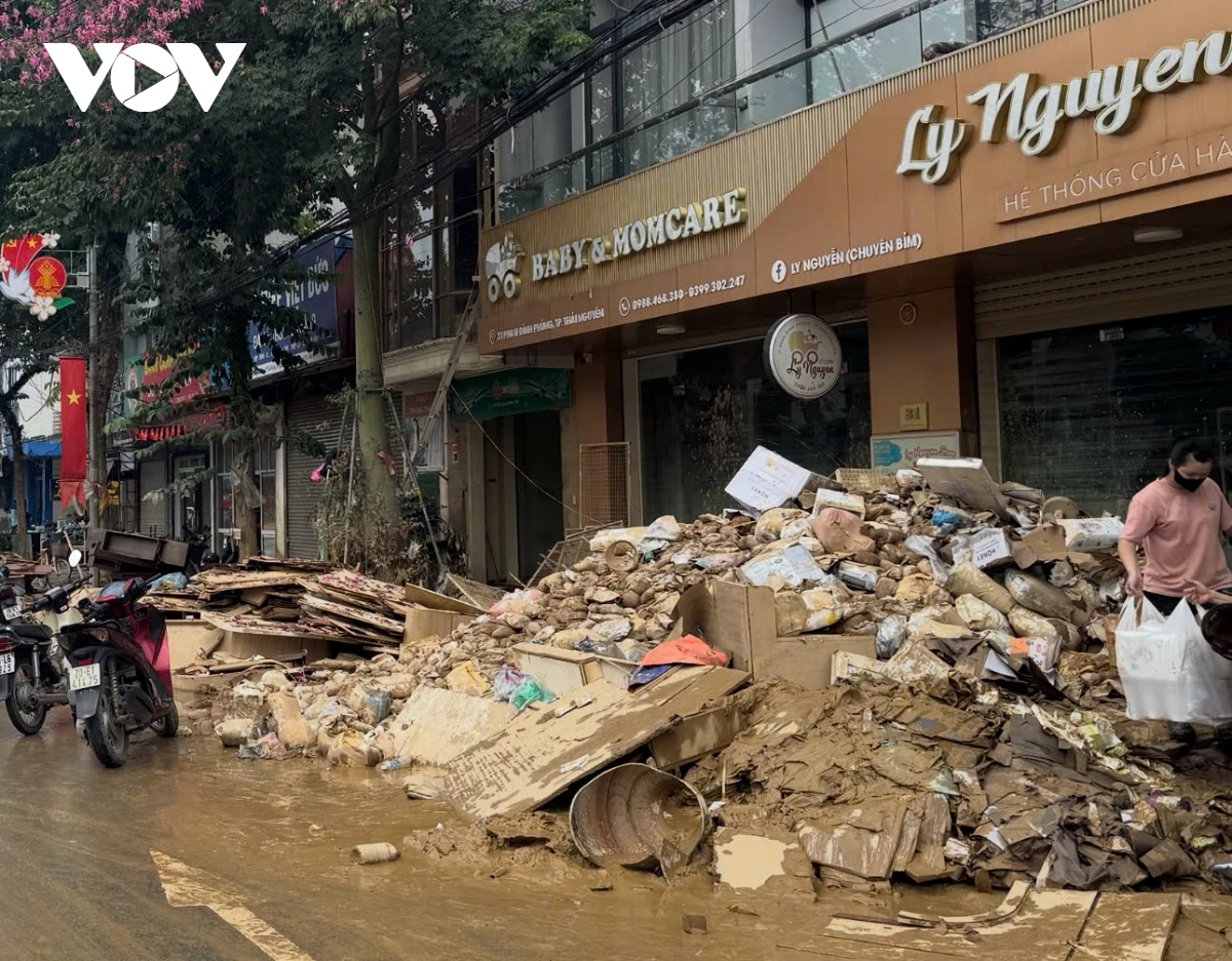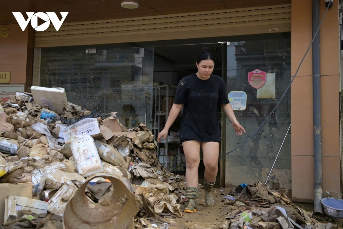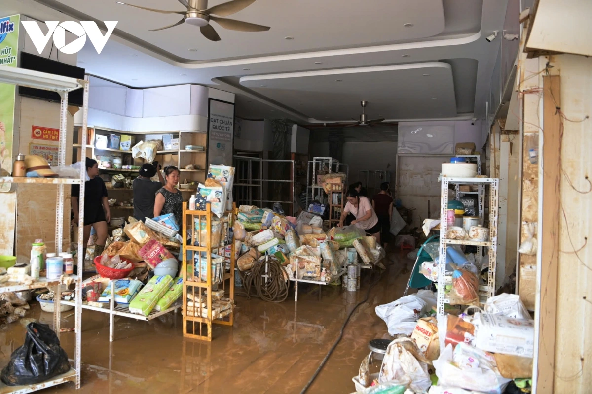 VOV.VN - Đứng giữa cửa hàng đồ sữa, bỉm và đồ trẻ em lớn nhất nhì Thái Nguyên ngập trong bùn đất sau khi lũ rút, chị Nguyễn Ly chủ cửa hàng bật khóc nức nở.