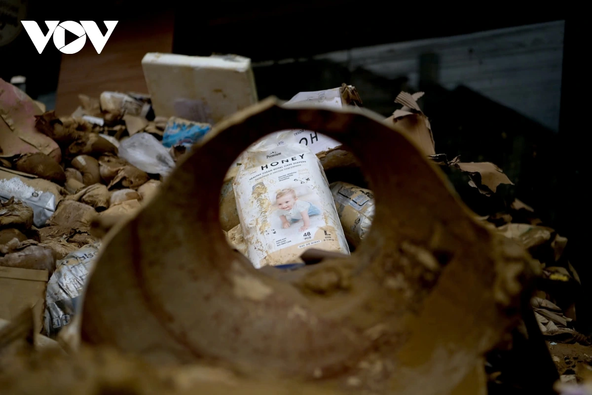Toàn bộ bỉm trẻ em và nhiều đồ dùng khác bị hư hỏng phải vứt bỏ không thể dùng được.