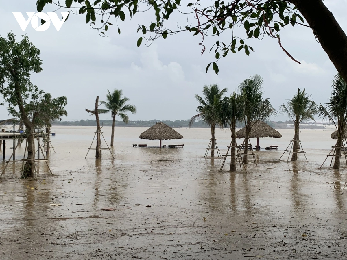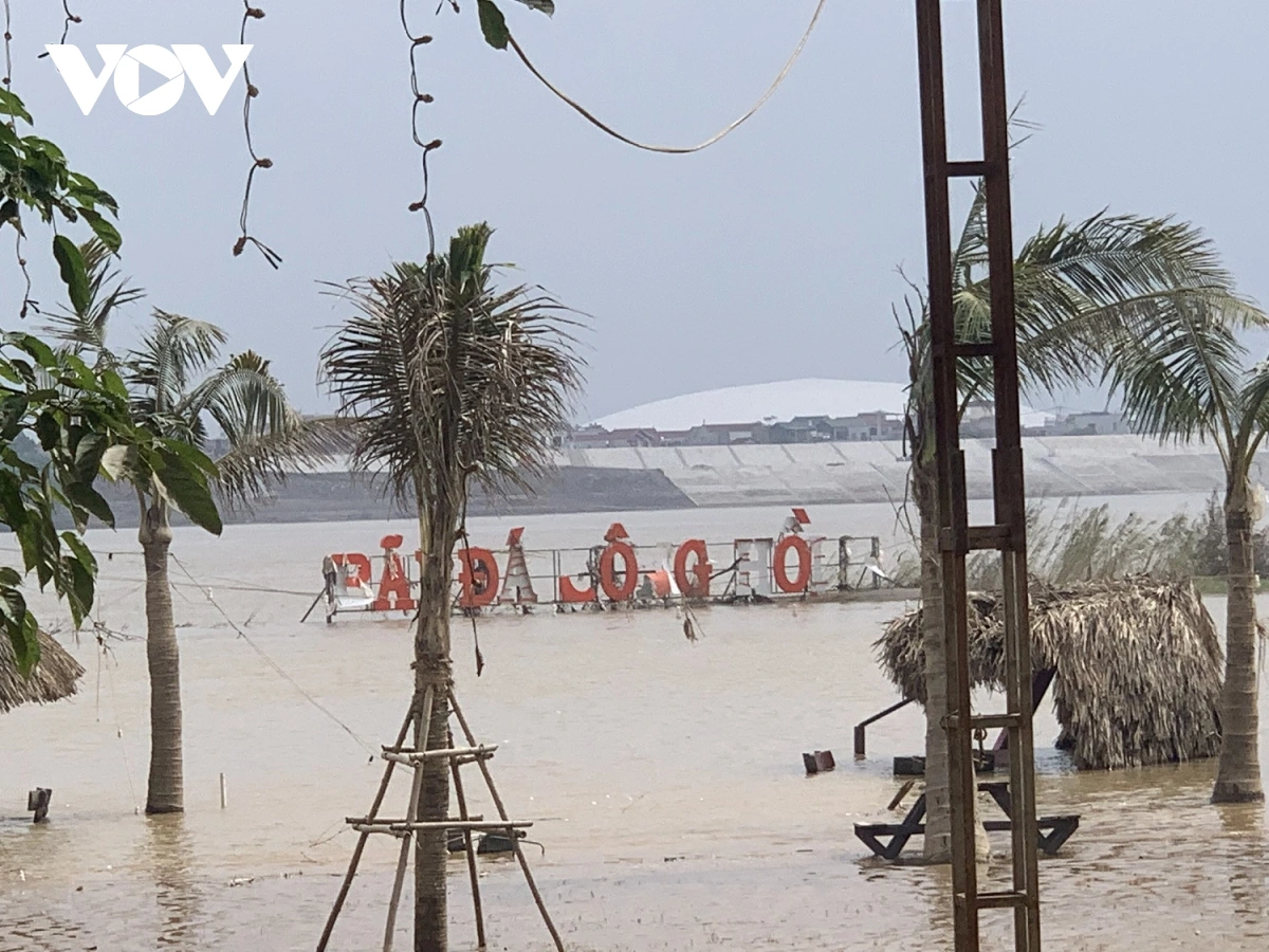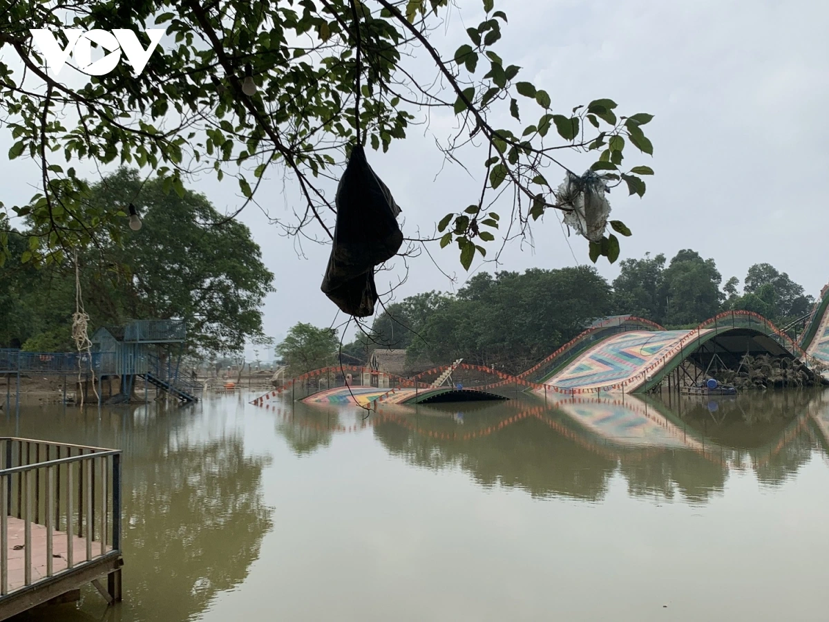 Do hoàn lưu của cơn bão số 11, lũ lên cao khiến khu du lịch bãi đá sông Hồng và các hộ kinh doanh xung quanh phải chịu cảnh ngập nặng suốt nhiều ngày.