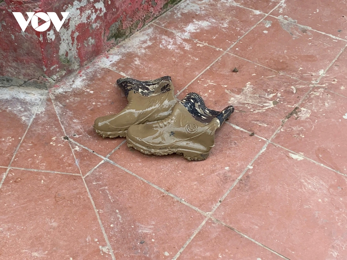 Nhìn đôi ủng này, có thể thấy lớp bùn dày như thế nào sau khi nước rút