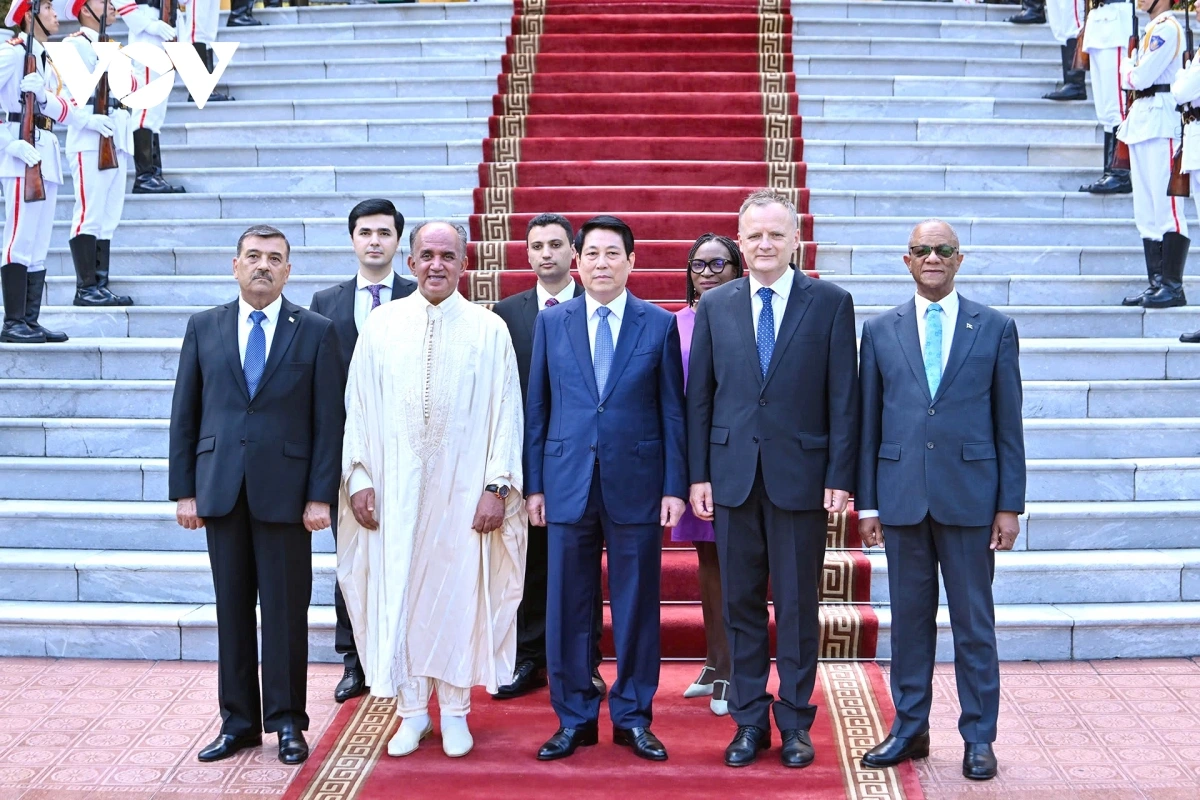 VOV.VN - Chiều 3/10, tại Phủ chủ tịch, Chủ tịch nước Lương Cường đã tiếp nhận Quốc thư của 4 Đại sứ kiêm nhiệm đến từ Jamaica, Tunisia, Slovenia và Tajikistan.