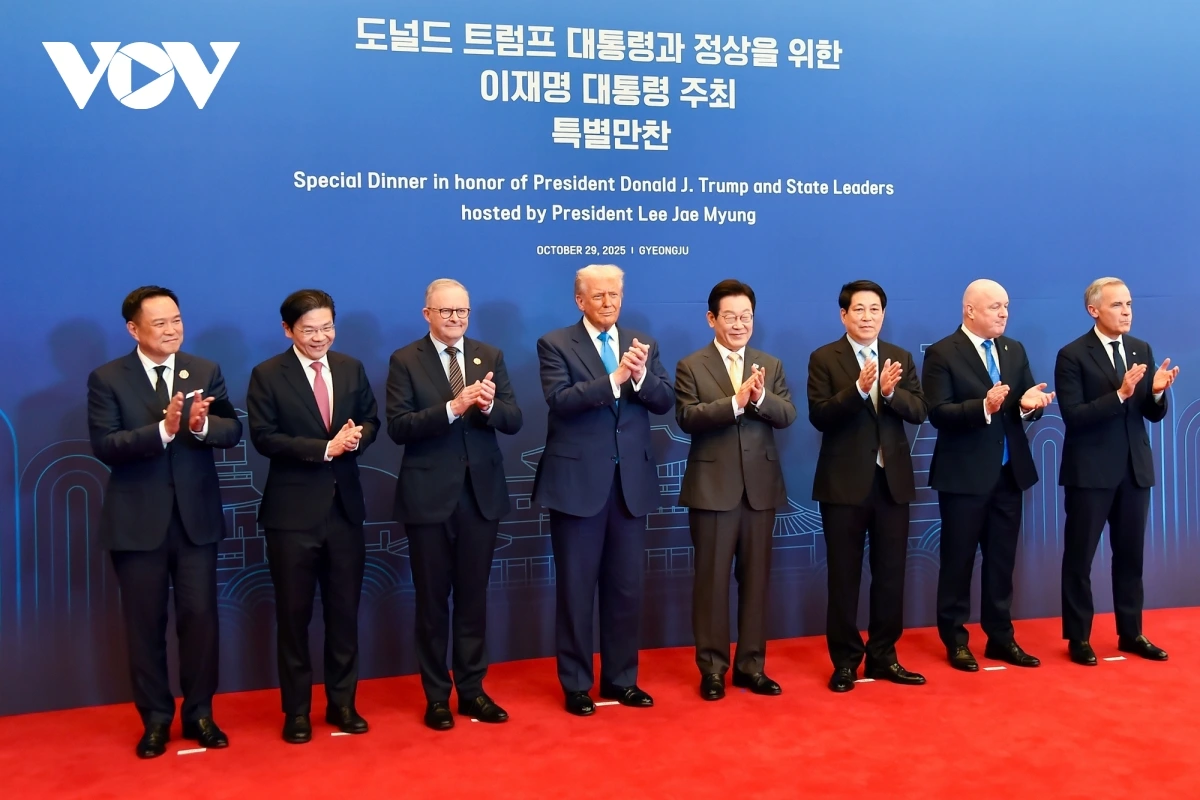 VOV.VN - Ngày 29/10, nhân dịp tham dự Hội nghị Thượng đỉnh Diễn đàn Hợp tác kinh tế châu Á - Thái Bình Dương (APEC) tại Hàn Quốc, Chủ tịch nước Lương Cường đã có cuộc gặp với Tổng thống Hoa Kỳ Donald Trump và lãnh đạo cấp cao một số thành viên APEC.