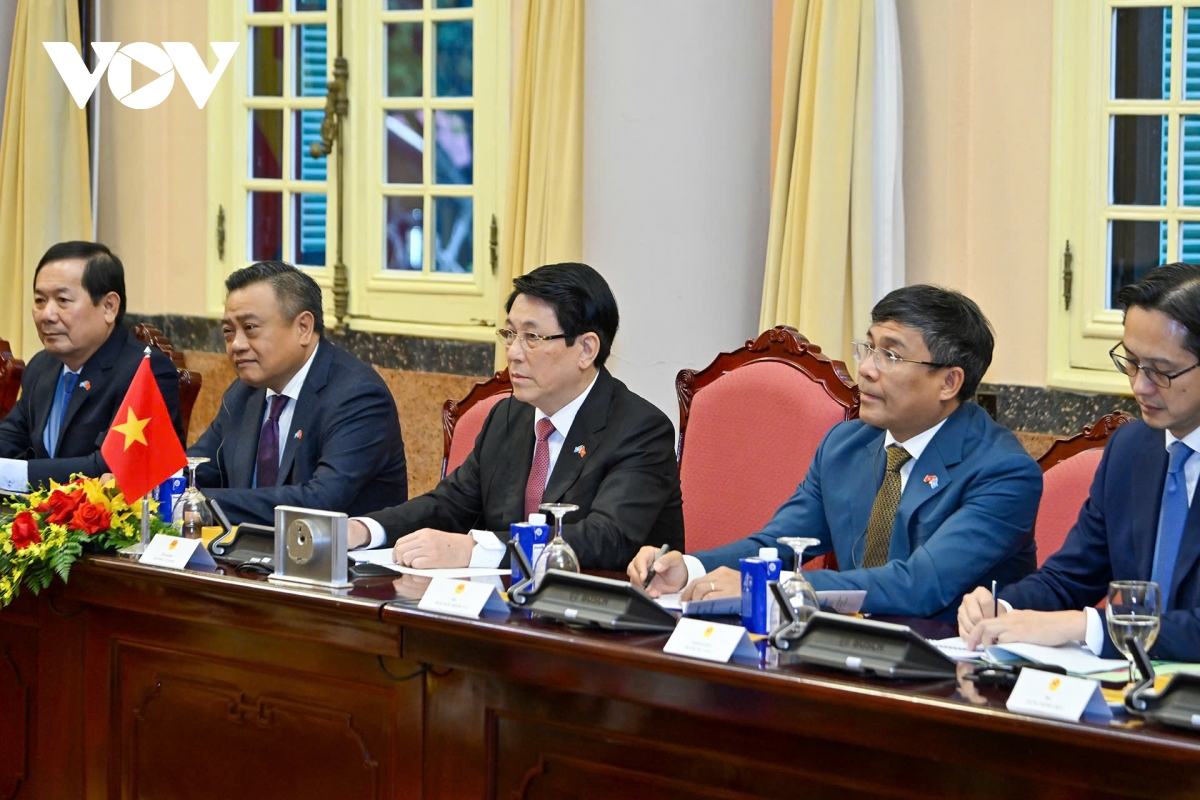 Chủ tịch nước Lương Cường phát biểu tại hội đàm.