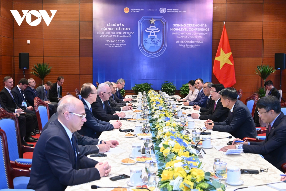 VOV.VN - Sáng 25/10 tại Trung tâm Hội nghị Quốc gia, Chủ tịch nước Lương Cường đã tiếp Tổng Công tố Liên bang Nga A.V. Gutsan, dẫn đầu đoàn đại biểu Nga sang tham dự Lễ Mở ký Công ước Liên Hợp Quốc về chống tội phạm mạng được tổ chức tại Hà Nội từ ngày 25-26/10/2025.