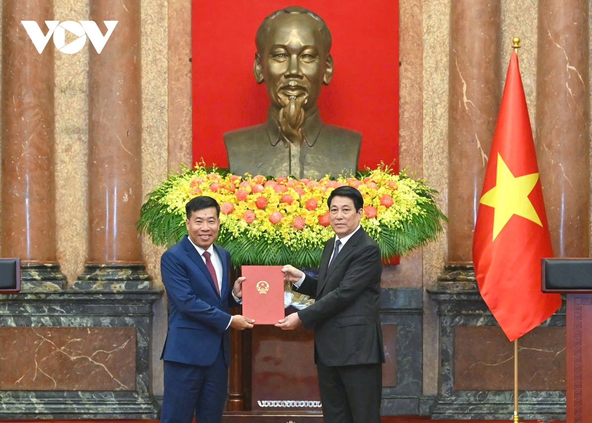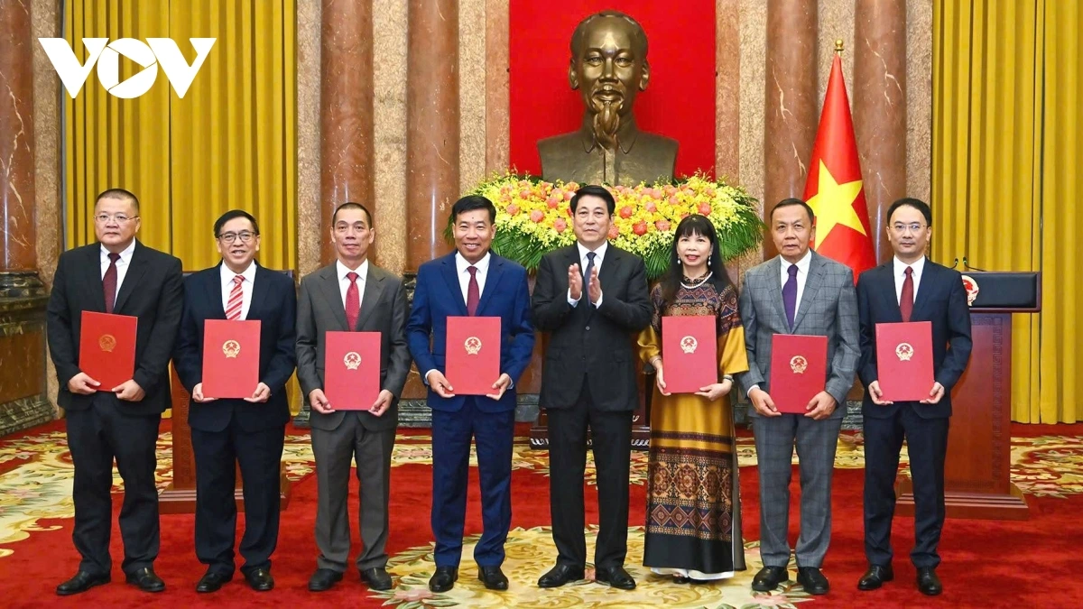VOV.VN - Sáng 10/10, tại Phủ Chủ tịch, Chủ tịch nước Lương Cường đã trao quyết định phong hàm Đại sứ và bổ nhiệm các Trưởng cơ quan đại diện Việt Nam ở nước ngoài.