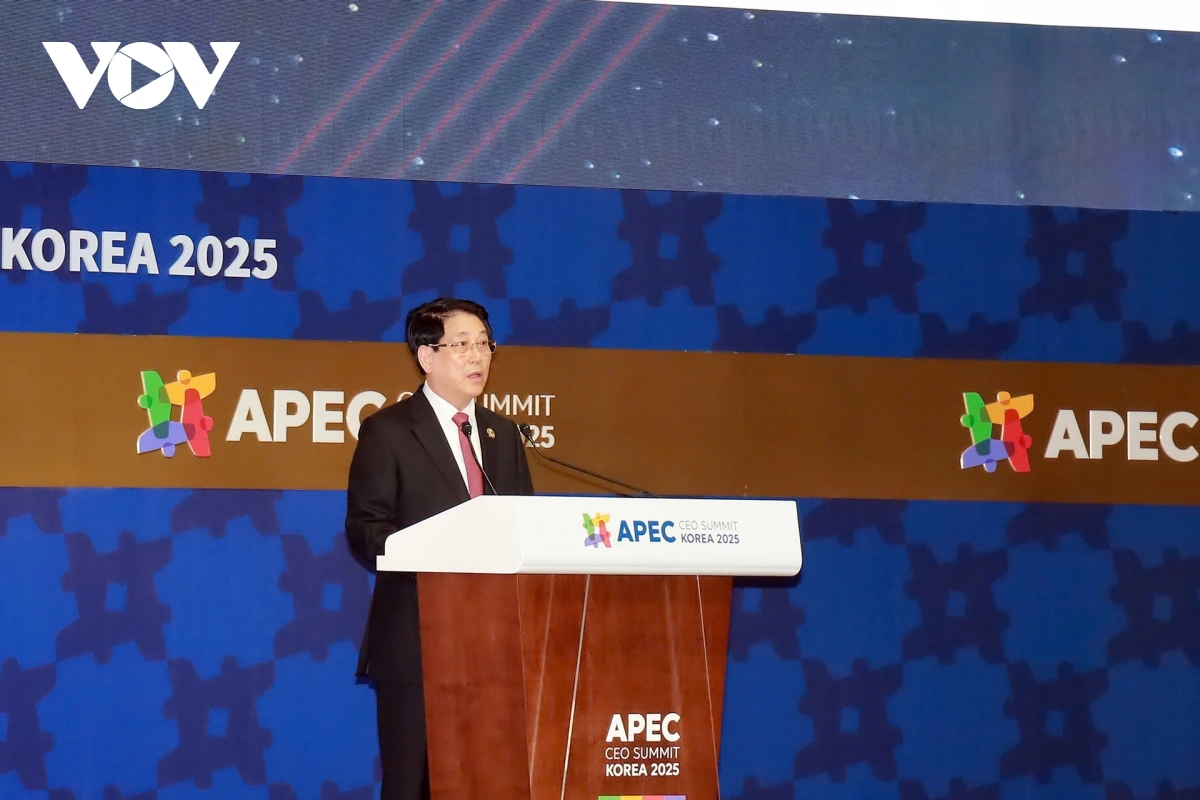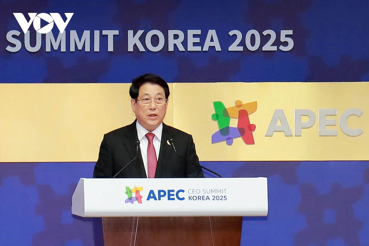 VOV.VN - Chiều 30/10 (theo giờ địa phương), trong chương trình tham dự Tuần lễ Cấp cao Diễn đàn Hợp tác kinh tế châu Á - Thái Bình Dương (APEC) 2025 tại thành phố Gyeongju, Hàn Quốc, Chủ tịch nước Lương Cường đã có bài phát biểu quan trọng tại Hội nghị Thượng đỉnh Doanh nghiệp APEC 2025.