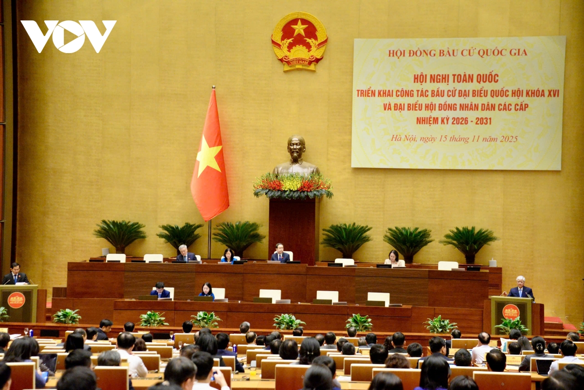 Sáng nay (15/11), tại Nhà Quốc hội, Hội đồng bầu cử Quốc gia tổ chức Hội nghị toàn quốc triển khai công tác bầu cử đại biểu Quốc hội khóa XVI và đại biểu Hội đồng nhân dân (HĐND) các cấp nhiệm kỳ 2026 – 2031. Dự hội nghị có Tổng bí thư Tô Lâm; Chủ tịch nước Lương Cường; Thường trực Ban Bí thư Trần Cẩm Tú; Trưởng Ban Tổ chức Trung ương Lê Minh Hưng.