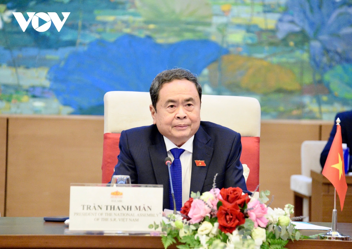 Nhân dịp này, Chủ tịch Quốc hội Trần Thanh Mẫn thông báo với Tổng Thư ký Liên Hợp Quốc về tình hình phát triển kinh tế - xã hội và bảo đảm an sinh xã hội, nâng cao đời sống nhân dân của Việt Nam, cũng như các nỗ lực của Quốc hội trong kiến tạo, hoàn thiện hành lang pháp lý, thể chế quản trị, nội luật hóa các nghĩa vụ và cam kết quốc tế, trong đó có nhiều ưu tiên của Liên Hợp Quốc như thực hiện các Mục tiêu phát triển bền vững, ký kết Công ước Liên Hợp Quốc về chống tội phạm mạng đang được mở ký tại Hà Nội.