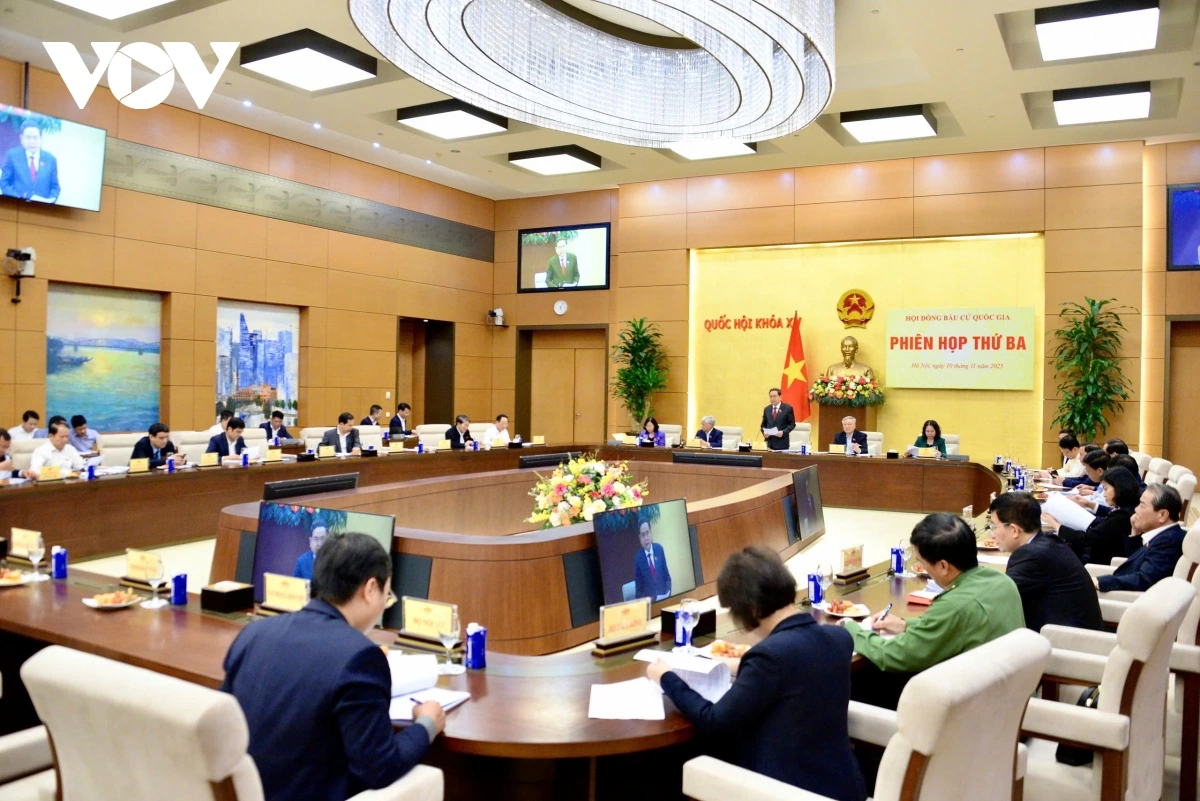 VOV.VN - Chiều tối nay (10/11), ngay sau ngày làm việc của Kỳ họp thứ 10, Quốc hội Khóa 15, Chủ tịch Quốc hội Trần Thanh Mẫn chủ trì Phiên họp thứ Ba, Hội đồng bầu cử Quốc gia (HĐBCQG).