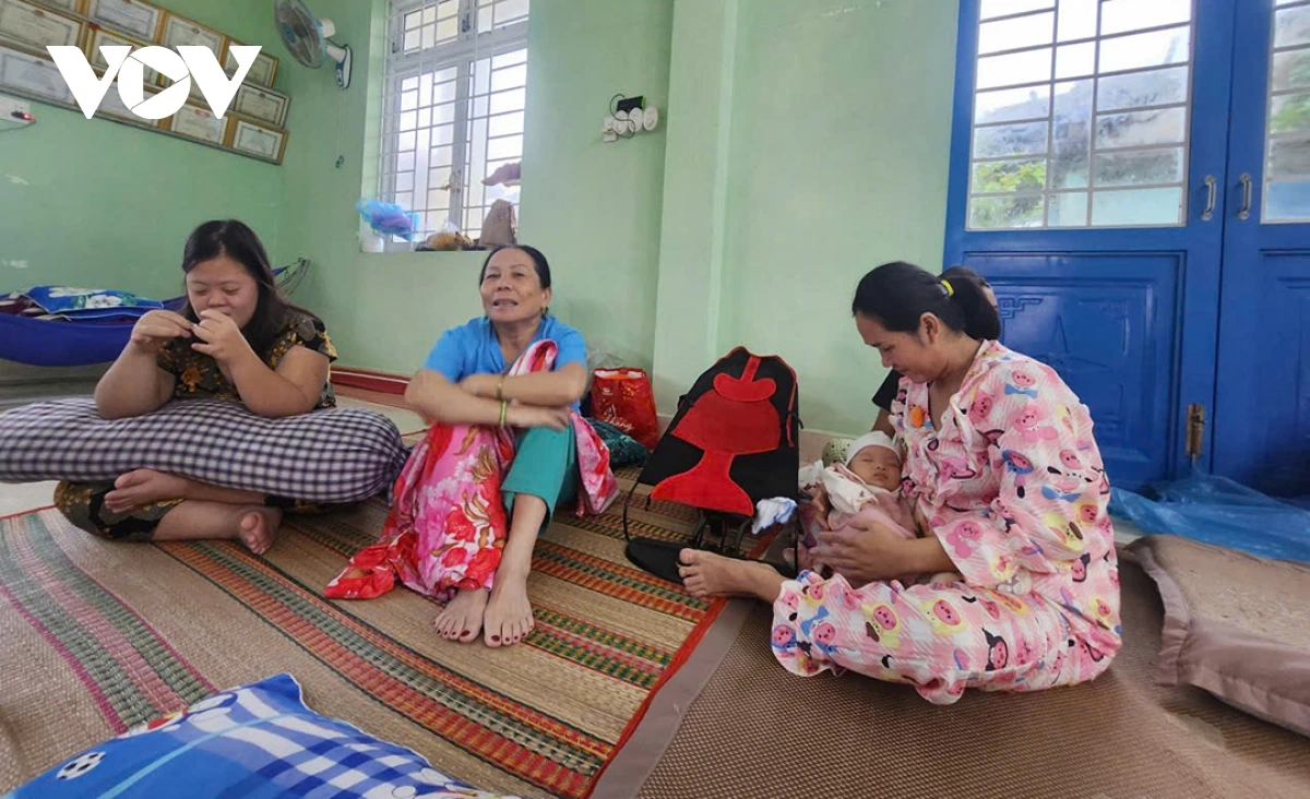Tại các địa điểm sơ tán dân tập trung ở nhà văn hóa thôn, trường Tiểu học Đức Lợi, xã Long Phụng, tỉnh Quảng Ngãi, chính quyền địa phương ưu tiên đưa người già, người bị bệnh, trẻ em, phụ nữ mới sinh đến các điểm tập trung này để đảm bảo an toàn.