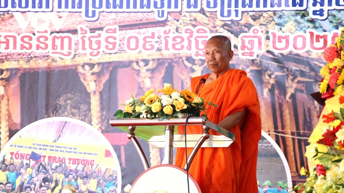VOV.VN - Trưa nay (9/11), chùa Tum Núp, xã An Ninh, thành phố Cần Thơ đã tổ chức Lễ mừng công giành cú đúp vô địch tại Giải Đua ghe ngo trong khuôn khổ Lễ hội Óoc Om Bóc - Đua ghe ngo thành phố Cần Thơ năm 2025.