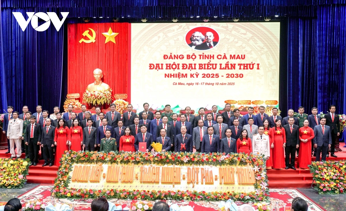 VOV.VN - Ngày 17/10, Đại hội đại biểu Đảng bộ tỉnh Cà Mau lần thứ I, nhiệm kỳ 2025-2030 chính thức khai mạc với sự tham dự của 450 đại biểu chính thức, đại diện cho hơn 82.000 đảng viên trong toàn tỉnh.