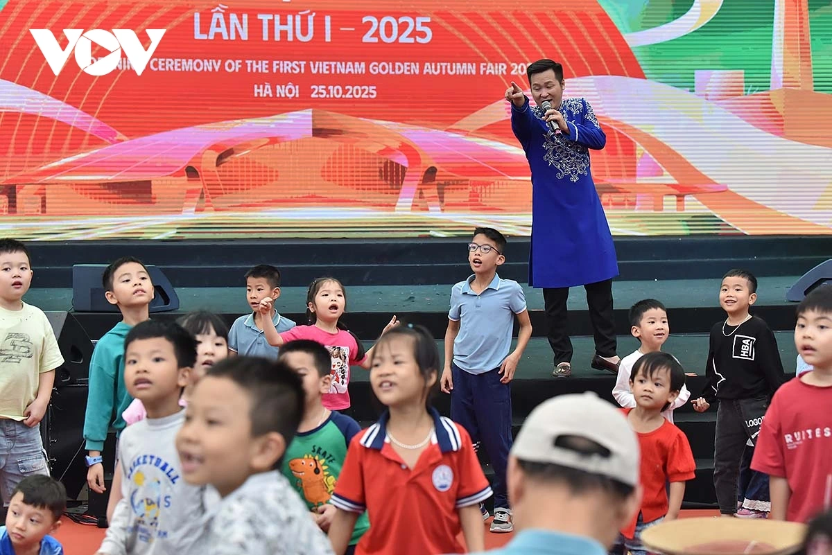VOV.VN - Ngày 26/10, trong khuôn khổ Hội chợ mùa Thu lần thứ nhất – năm 2025 tại Trung tâm Triển lãm Quốc gia Việt Nam (Đông Anh, Hà Nội), diễn ra chương trình nghệ thuật đặc sắc do Nhà hát múa rối Việt Nam và Nhà hát ca múa nhạc quốc gia Việt Nam biểu diễn phục vụ khách thăm quan hội chợ.