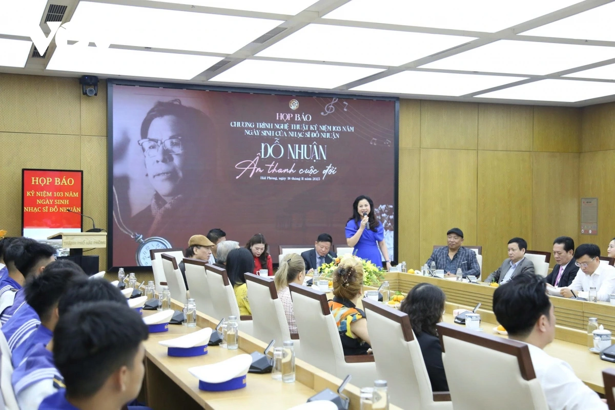 VOV.VN - Nhà hát Nghệ thuật đương đại Hải Phòng (Sở Văn hoá, Thể thao và Du lịch TP Hải Phòng) sẽ dàn dựng, tổ chức chương trình nghệ thuật “Đỗ Nhuận – Âm thanh cuộc đời”, kỷ niệm 103 năm ngày sinh Nhạc sĩ Đỗ Nhuận, “cây đại thụ” của nền âm nhạc Việt Nam.