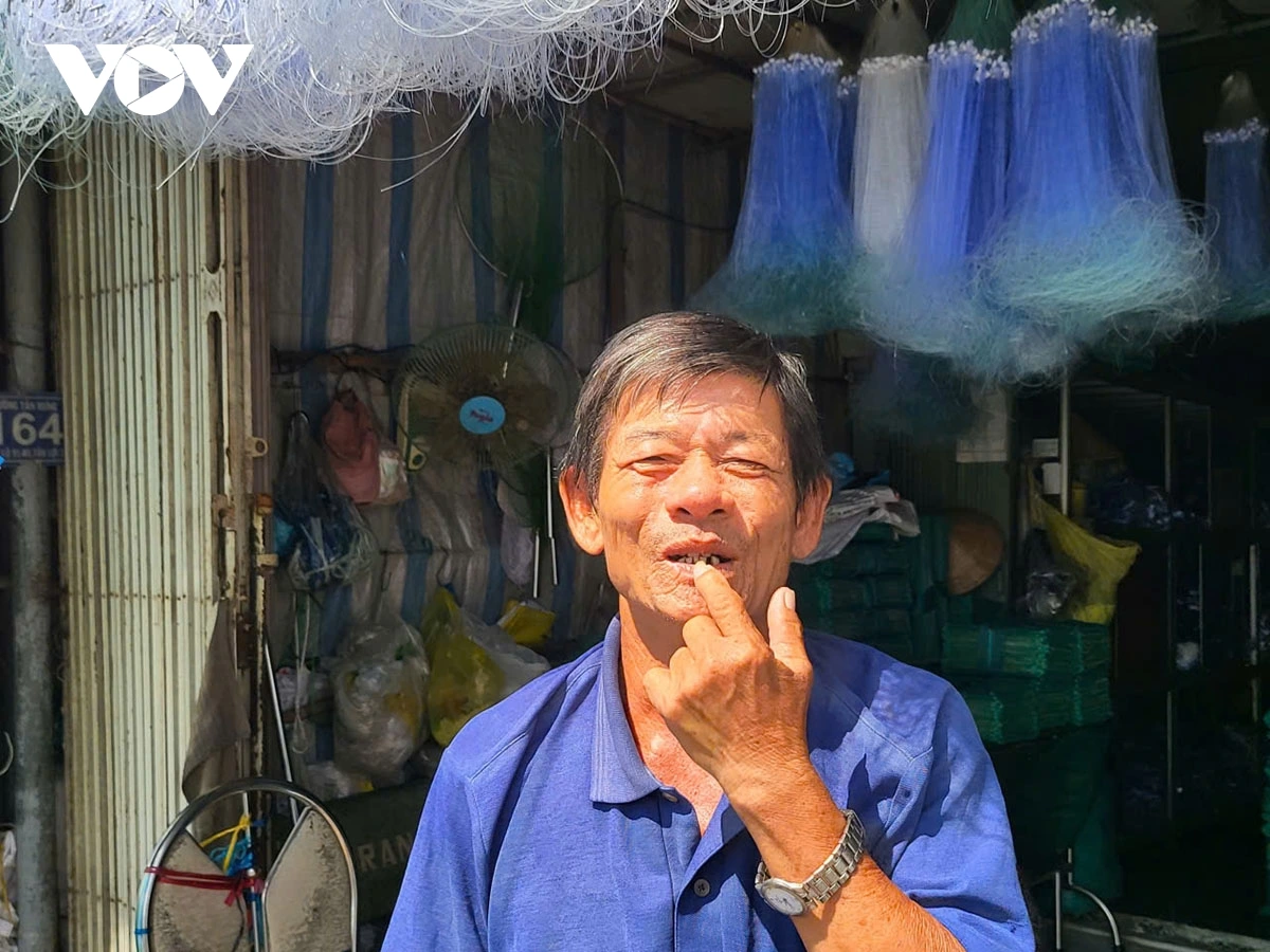 Ông Phạm Phước Phong chủ cơ sở kinh doanh lưới Năm Tấn cho biết, ông bắt đầu “cắn chì” từ lúc 23 tuổi. Thời đó tôm cá nhiều nên lưới bán chạy lắm. Nếu ngày thường, mỗi người “cắn chì” từ sáng đến chiều được khoảng 3-4 tay lưới vào mùa nước nổi phải làm thâu đêm để hoàn thành thêm nhiều tay lưới nữa kịp giao cho khách hàng đúng hẹn. Mỗi tay lưới thời đó dài khoảng 100 mét cần gần nửa ký chì. Tính ra mỗi ngày người dân phải lần lượt ngậm vài ba ký chì trong miệng để cắn.
