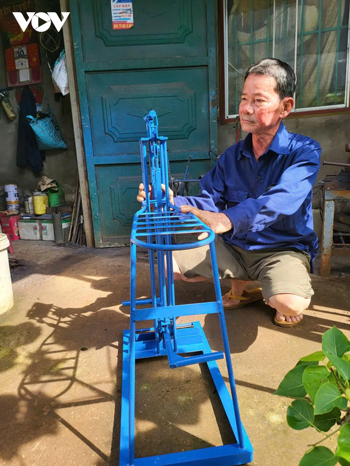 Chiếc máy dập chì đã góp phần để làng đan lưới Thơm Rơm tăng công suất, bảo vệ được sức khỏe