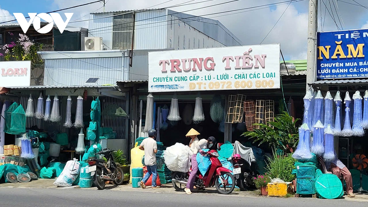 VOV.VN - Những ngày này khi mùa nước nổi về miền Tây tại Làng đan lưới Thơm Rơm nằm cặp Quốc lộ 91 thuộc phường Thới Long, thành phố Cần Thơ thật sự nhộn nhịp. Hàng chục hộ dân nơi đây miệt mài sản xuất ngày đêm để kịp có đủ ngư cụ cung cấp cho thị trường.