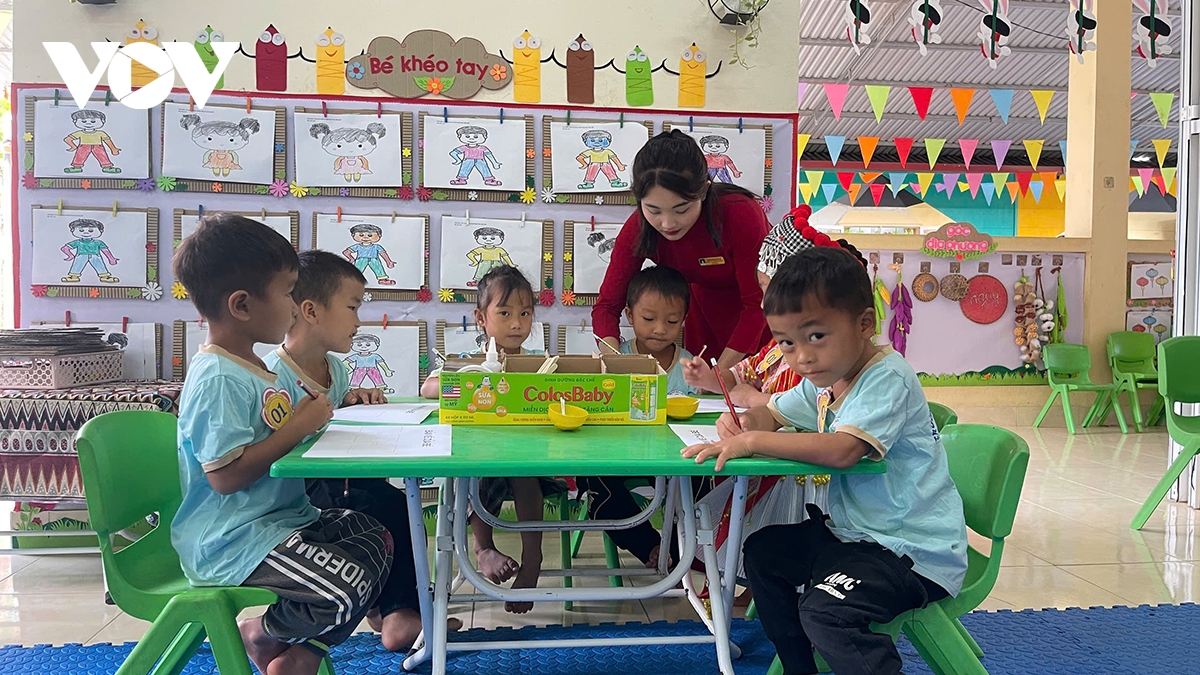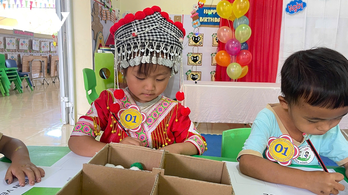 “Ở đây hầu như phụ huynh đi làm nương đi làm thuê từ sớm nên các phụ huynh đưa trẻ đi học rất là sớm, sáng các cô đón trẻ 7h30 nhưng mà 7h học sinh cũng đã đến đây rồi, các cô cũng đi sớm để kịp đón trẻ, không thì các con chơi ở ngoài sân, cô lo các con bị ngã, không an toàn”, cô Đào chia sẻ.