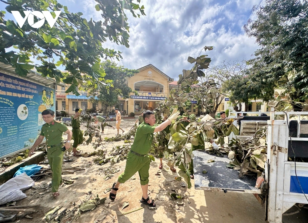 Công an Đắk Lắk hỗ trợ dọn dẹp, giúp dân sớm ổn định sau bão