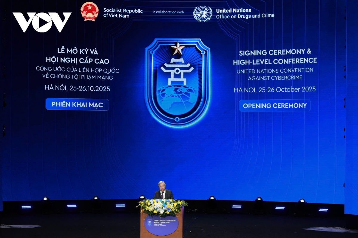VOV.VN - Tổng Thư ký Liên Hợp Quốc khẳng định, Công ước Hà Nội là một công cụ pháp lý có hiệu lực ràng buộc mạnh mẽ, nhằm củng cố năng lực phòng vệ tập thể trước tội phạm mạng.