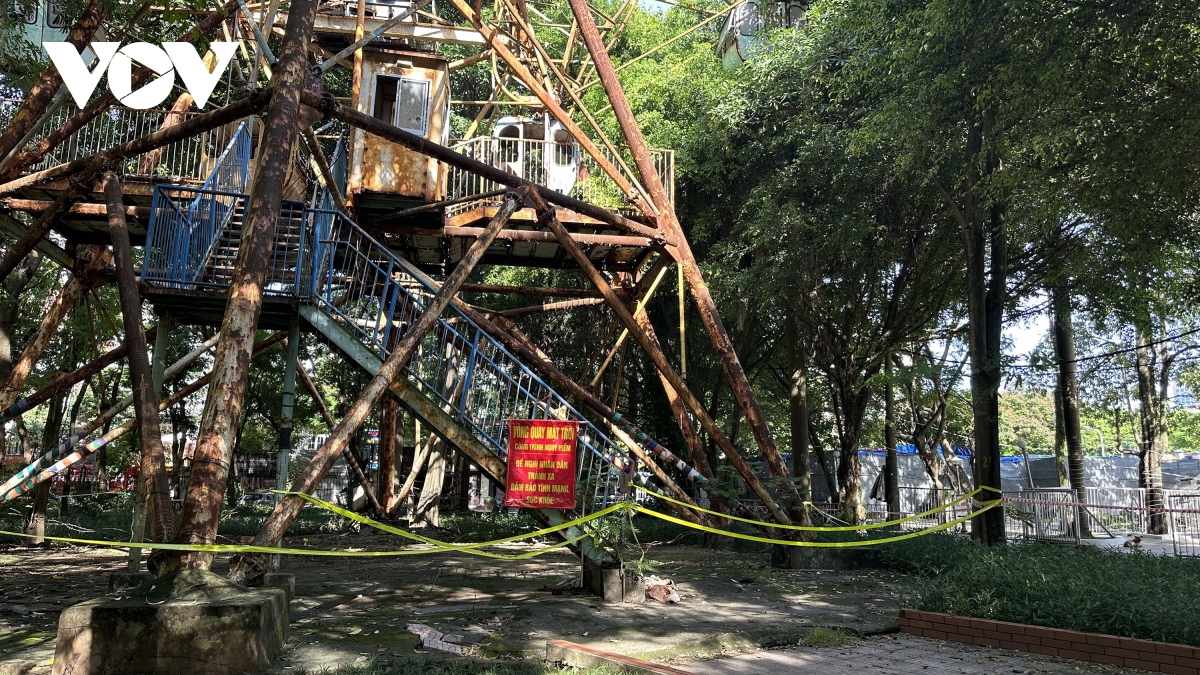 Nhưng nhiều năm nay không hoạt động, han rỉ. UBND phường Thanh Nhàn phải đặt thông báo cảnh báo công trình nguy hiểm đề nghị người dân tránh xa để đảm bảo an toàn.