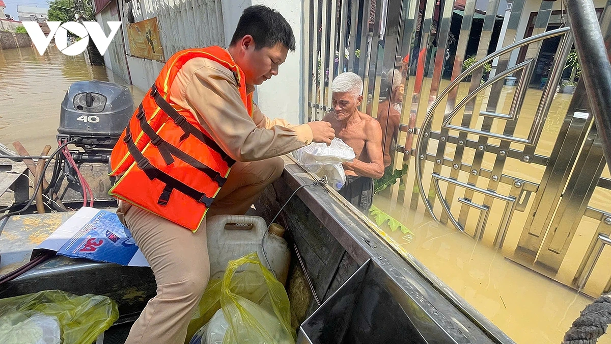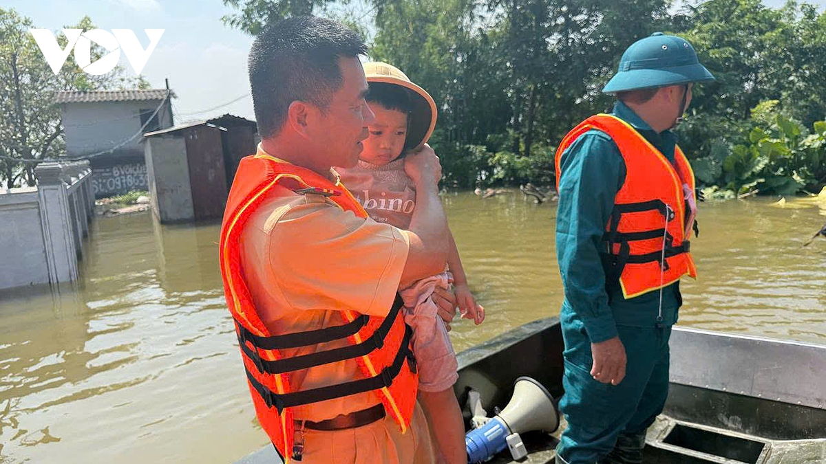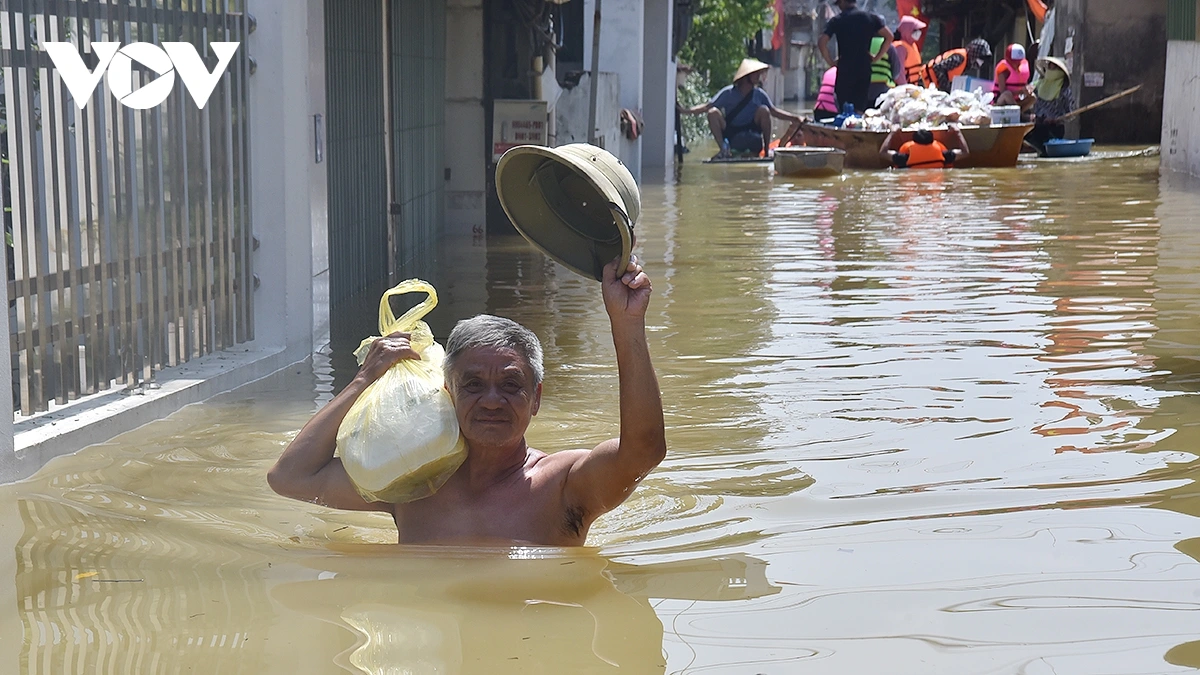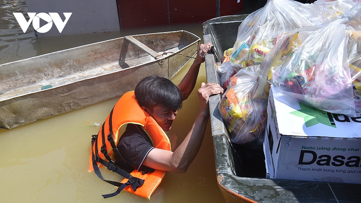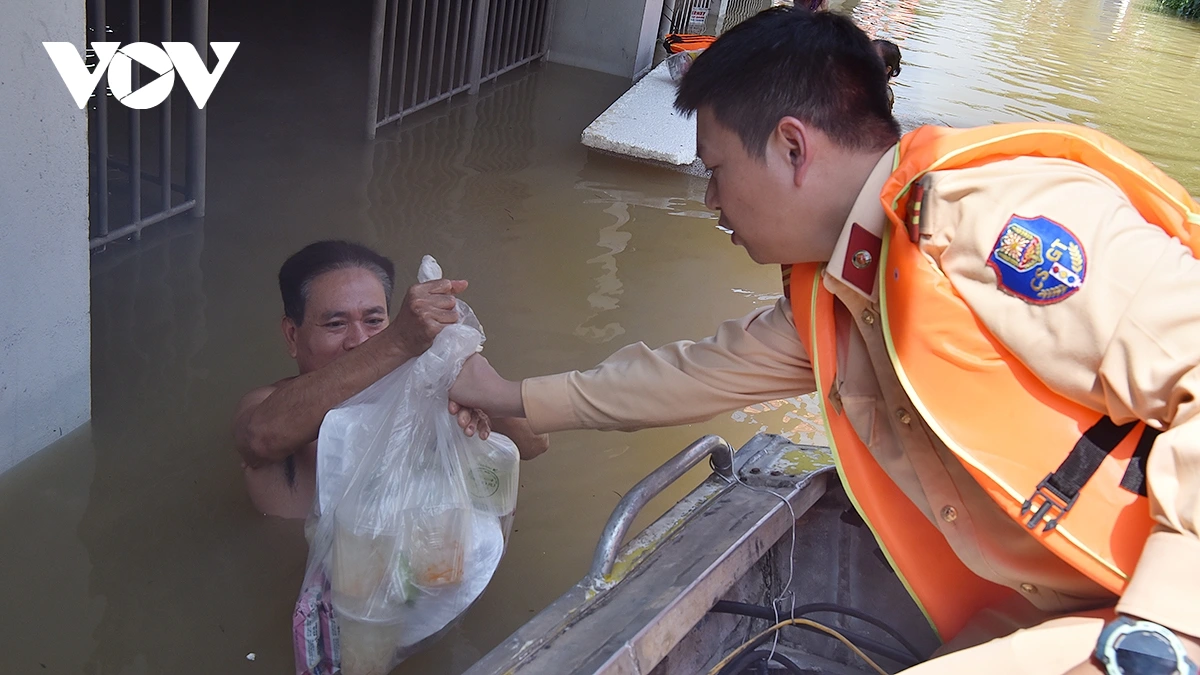 VOV.VN - Nước lũ về nhanh trong đêm 9/10 khiến mực nước sông Cà Lồ đoạn qua thôn Yên Phú, xã Đa Phúc, TP Hà Nội đạt đỉnh, hàng trăm hộ dân chìm trong nước sâu 2-3m. Đến trưa 10/10, nước bắt đầu rút chậm. Lực lượng chức năng cùng người dân từ nhiều nơi trên địa bàn thành phố đã có nỗ lực hỗ trợ người dân vượt lũ.