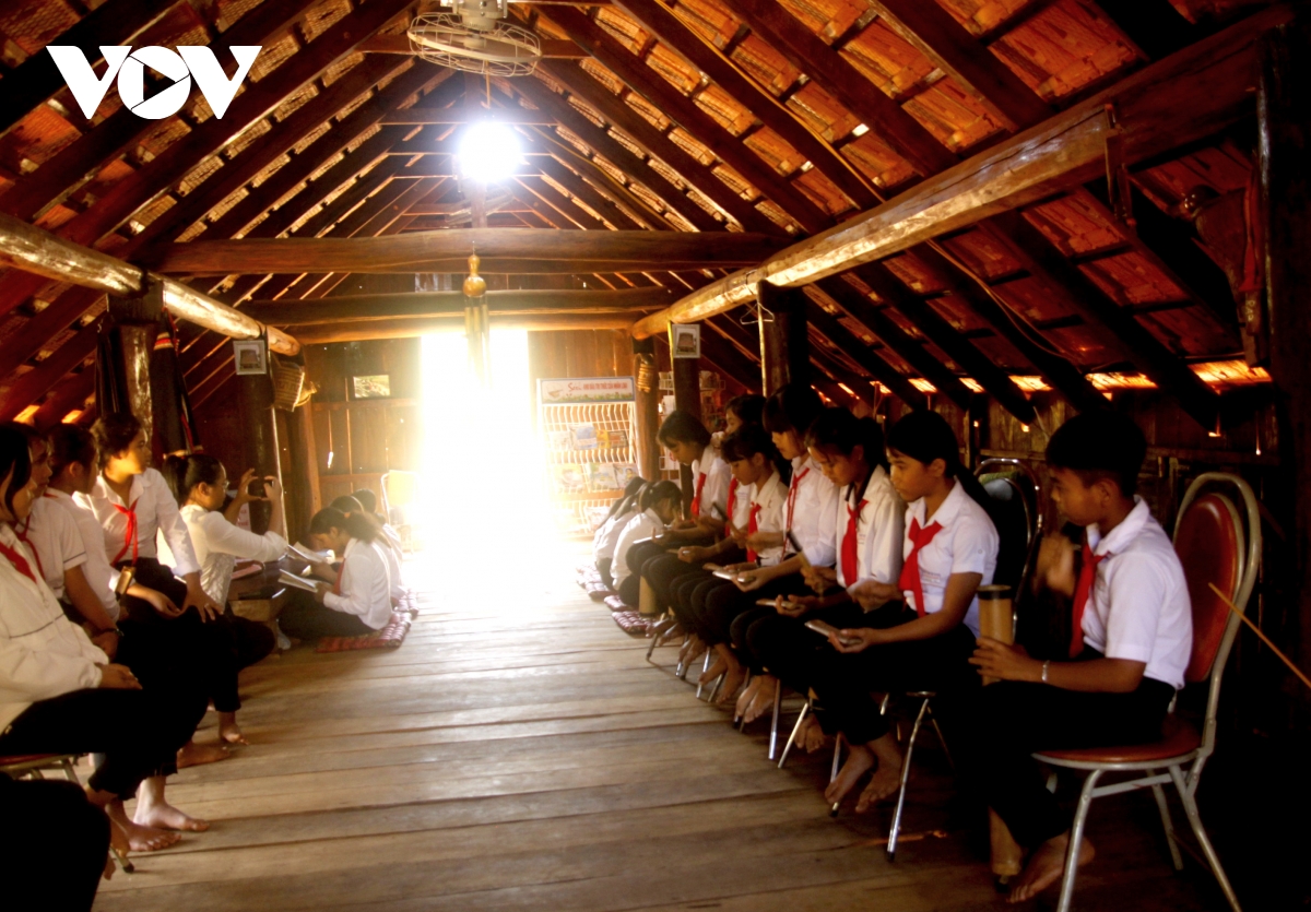 Giờ ra chơi, thư viện Trường THCS Y Ngông Niê Kđăm, xã Quảng Phú, tỉnh Đắk Lắk trở nên nhộn nhịp. Trong không gian mô phỏng nhà dài Ê Đê, vừa lưu giữ bản sắc văn hóa, vừa là thư viện hiện đại với nhiều thể loại sách báo, máy tính kết nối internet, nhiều học sinh đến đọc sách, tra cứu tài liệu, học nhóm hay đơn giản là thư giãn sau giờ học. Em H Julia Knul, học sinh lớp 8A, chia sẻ: