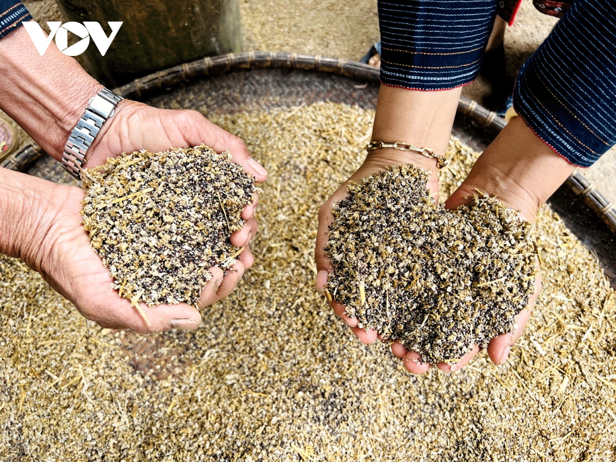Thóc và các loại hạt hỗn hợp sau khi được sàng lọc kĩ càng để chuẩn bị cho công đoạn giã.