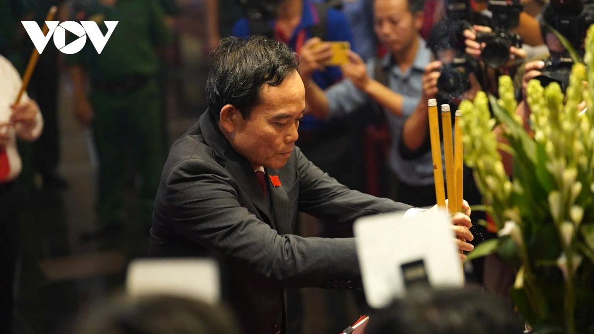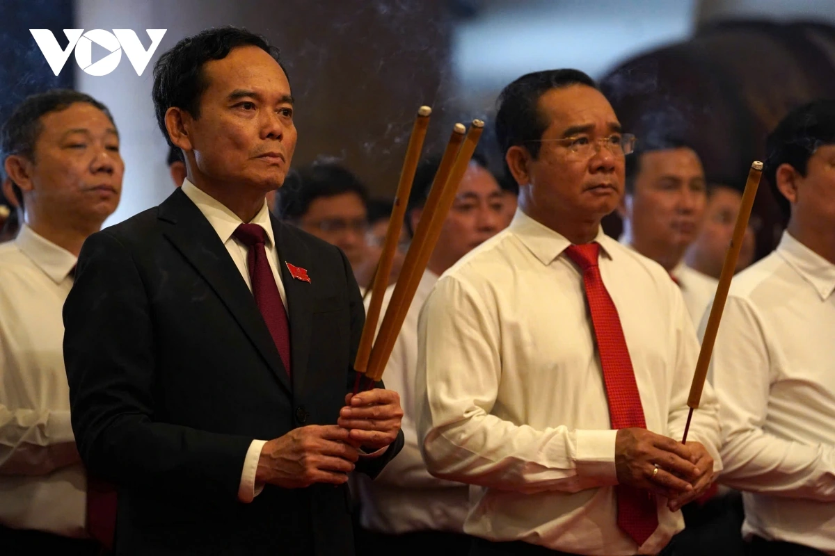 Bí thư Thành ủy TP.HCM Trần Lưu Quang và Chủ tịch UBND TP.HCM Nguyễn Văn Được dâng hương.