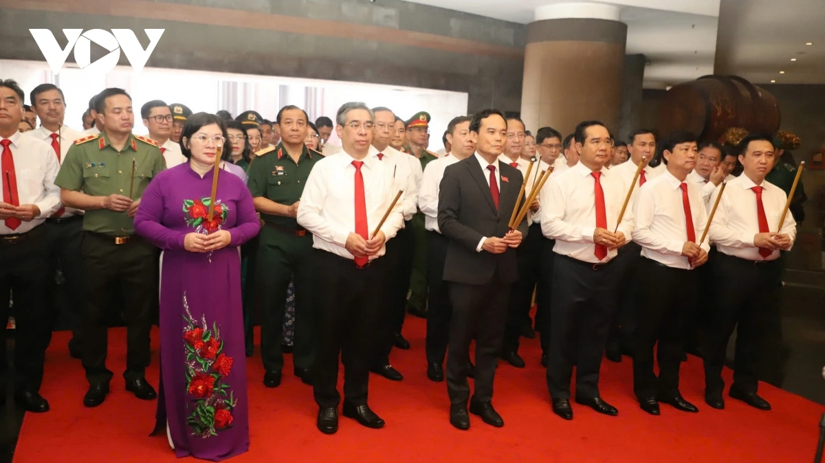 Đoàn đại biểu thành kính dâng hương. Đây là hoạt động ý nghĩa nhằm giúp các đại biểu tìm hiểu thêm về lịch sử, bản sắc, tiềm năng phát triển KT- XH của TP.HCM mới. (ảnh M.Q)