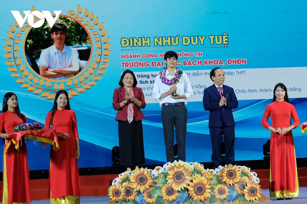 Sinh viên Đinh Duy Như Tuệ, Thủ khoa Trường Đại học Bách Khoa, Đại học Đà Nẵng, là 1 trong 9 thủ khoa được vinh danh bày tỏ: “Em rất biết ơn đến quý vị đại biểu, quý thầy cô giáo vì đây là cơ hội vô cùng quý giá mọi người đã dành trao cho các em thủ khoa và những sinh viên xuất sắc như em, mong rằng em sẽ không phụ lòng mọi người. Sự hỗ trợ này không chỉ là về mặt vật chất mà còn về mặt tinh thần vì ngoài số tiền có thể giúp em trang trải học phí, sự hỗ trợ về tinh thần giúp em và các bạn có thêm động lực và không ngừng nỗ lực học tập”, bạn Tuệ nói.