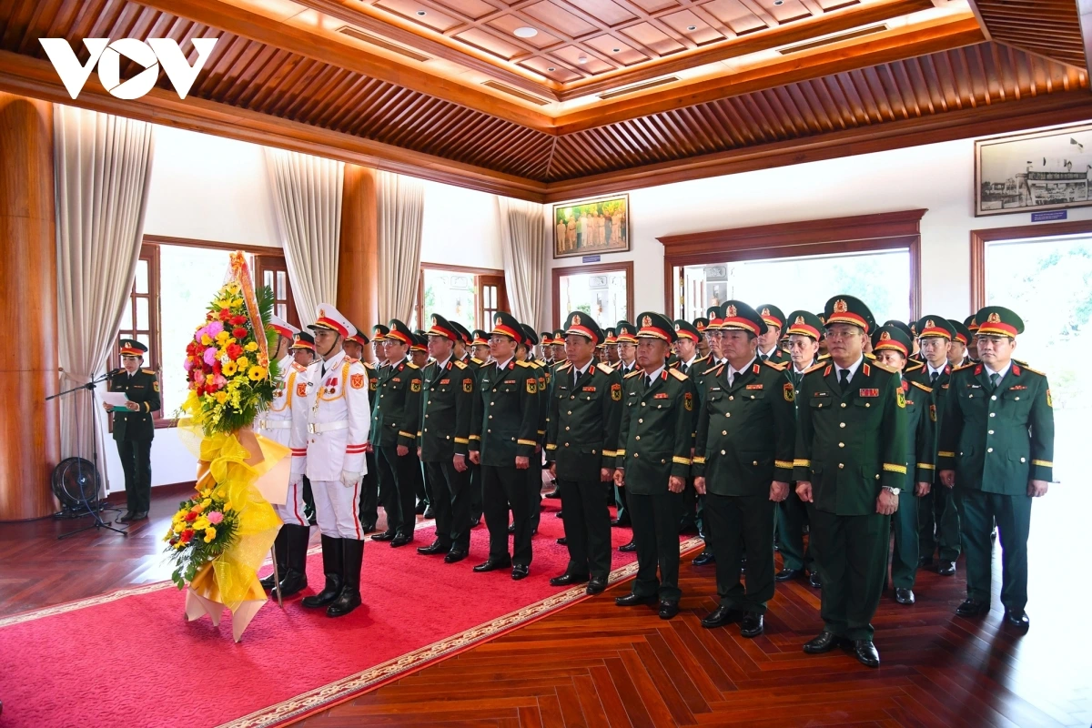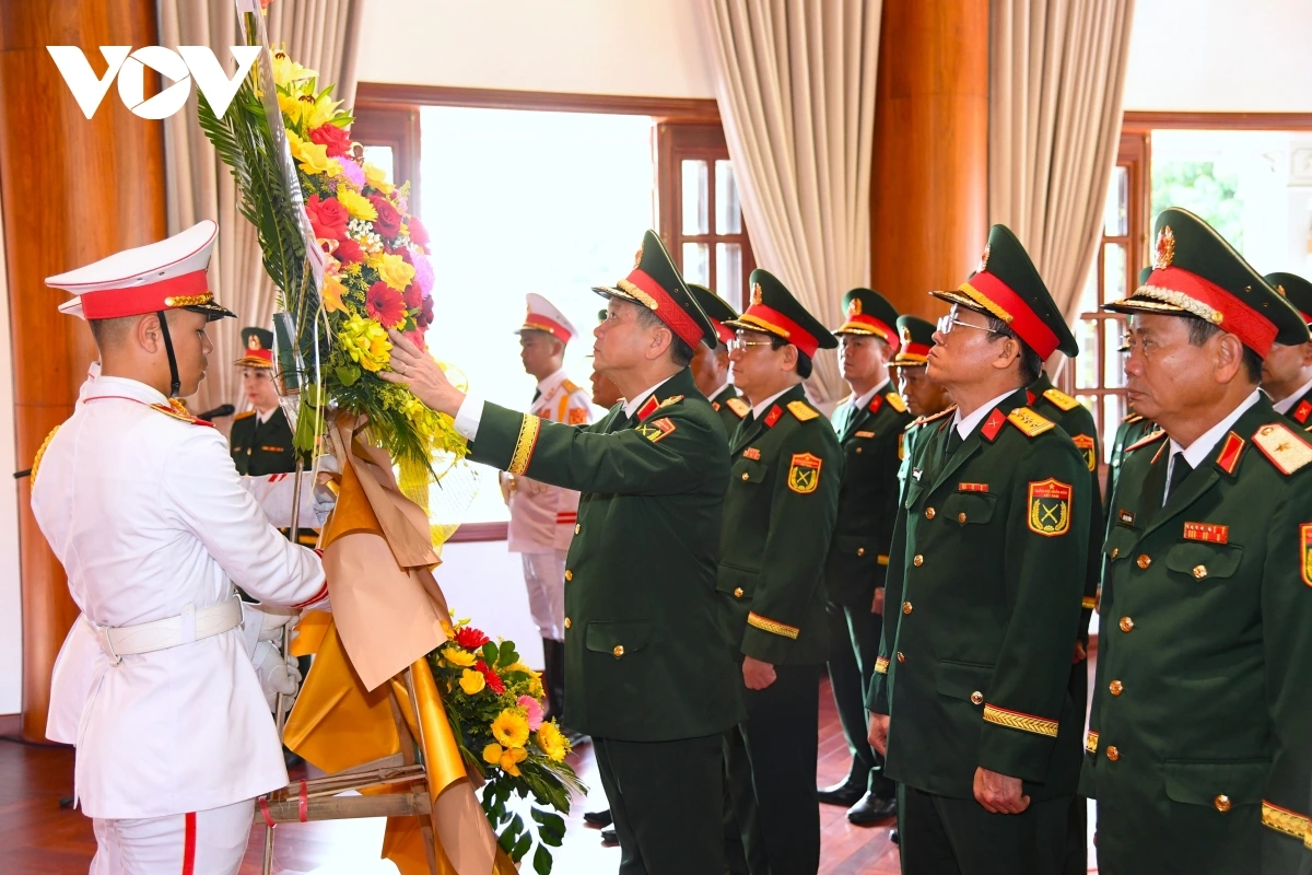 Các đại biểu thành kính dâng hương, đặt vòng hoa tưởng niệm Chủ tịch Hồ Chí Minh, Đại tướng Võ Nguyên Giáp - Tổng Tư lệnh đầu tiên, người học trò xuất sắc của Bác Hồ.