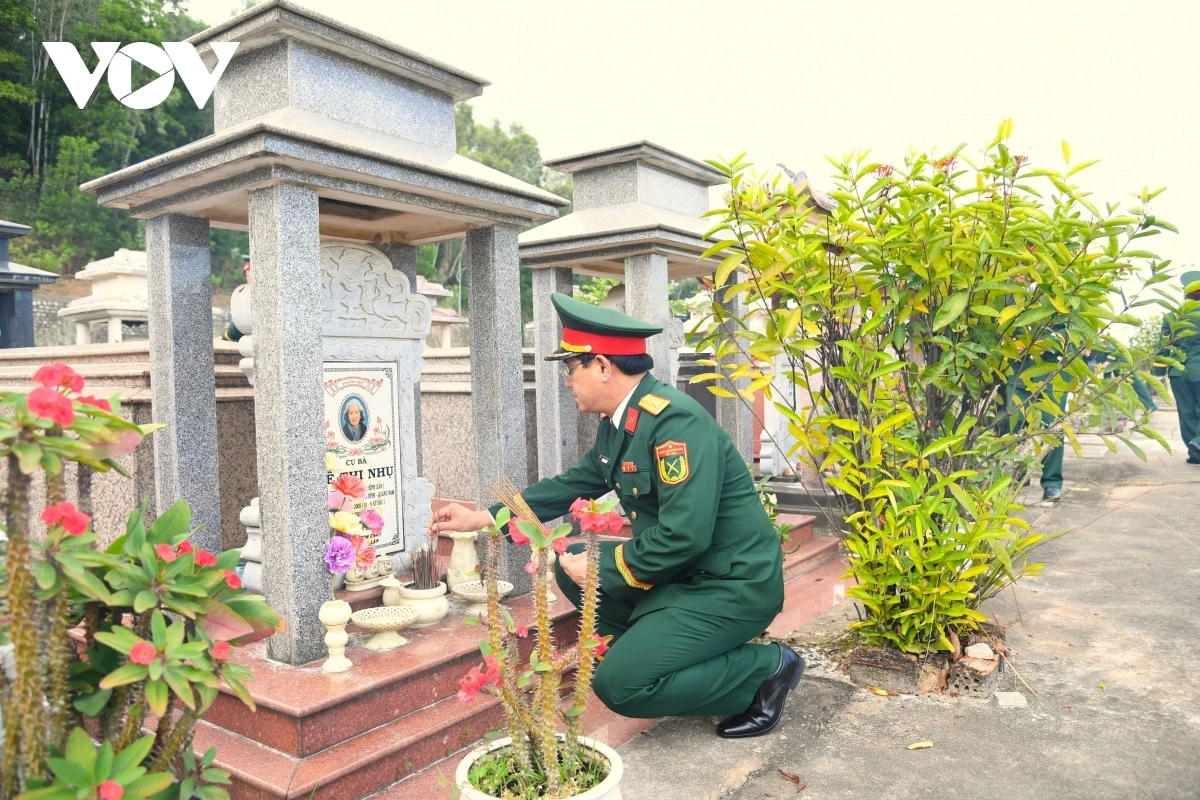 Tại Nghĩa trang Liệt sĩ Quân khu 5, nơi an nghỉ của những tướng lĩnh, anh hùng, cán bộ cao cấp đã trọn đời vì Tổ quốc, các đại biểu dâng hương tưởng niệm, bày tỏ lòng tri ân sâu sắc và lời hứa son sắt mãi tiếp bước cha anh, đoàn kết, nỗ lực vượt qua khó khăn, hoàn thành xuất sắc mọi nhiệm vụ trong thời kỳ mới.