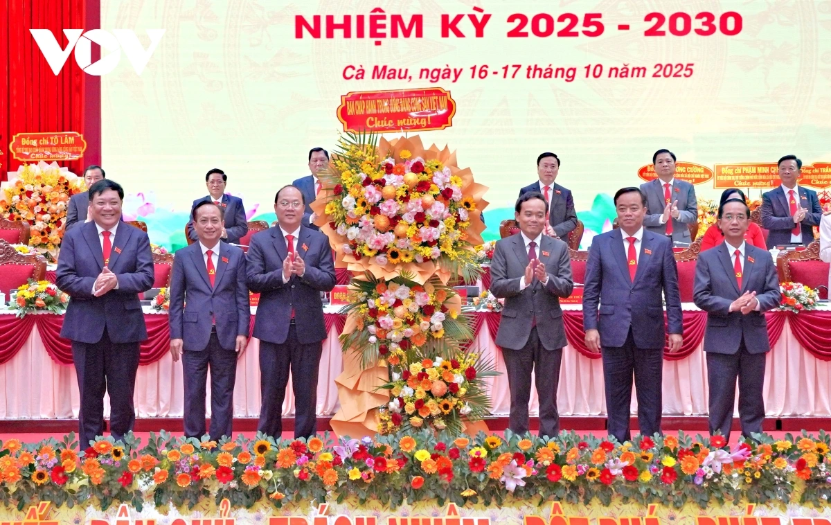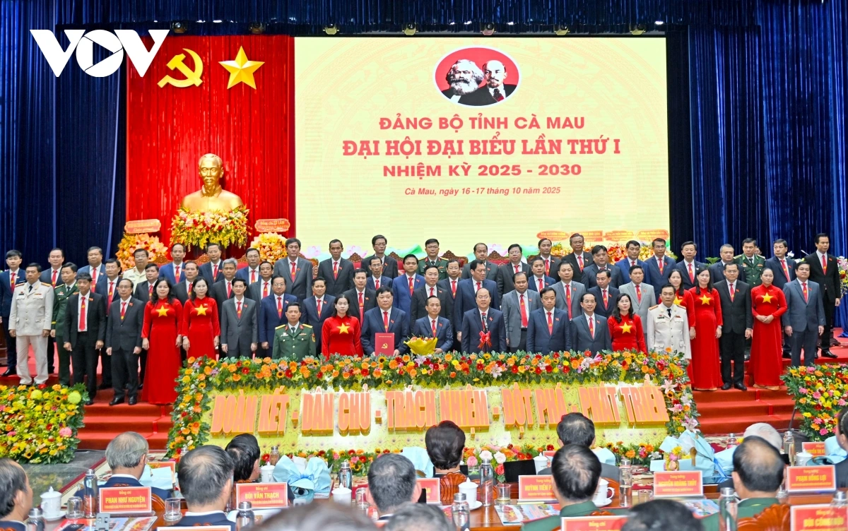 VOV.VN - Ngày 17/10, Đại hội đại biểu Đảng bộ tỉnh Cà Mau lần thứ I, nhiệm kỳ 2025-2030 đã công bố quyết định của Bộ Chính trị về việc chỉ định Ban Chấp hành, Ban Thường vụ Đảng bộ tỉnh Cà Mau nhiệm kỳ 2025-2030.