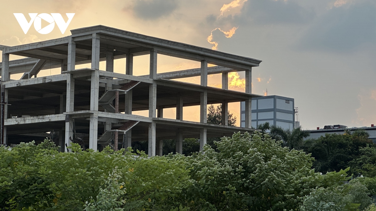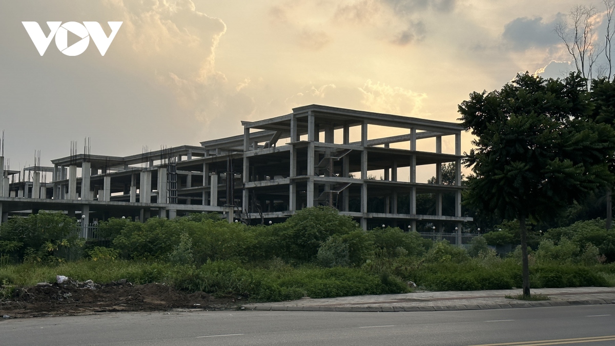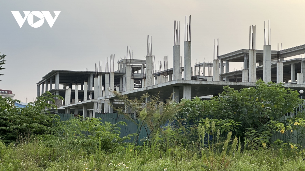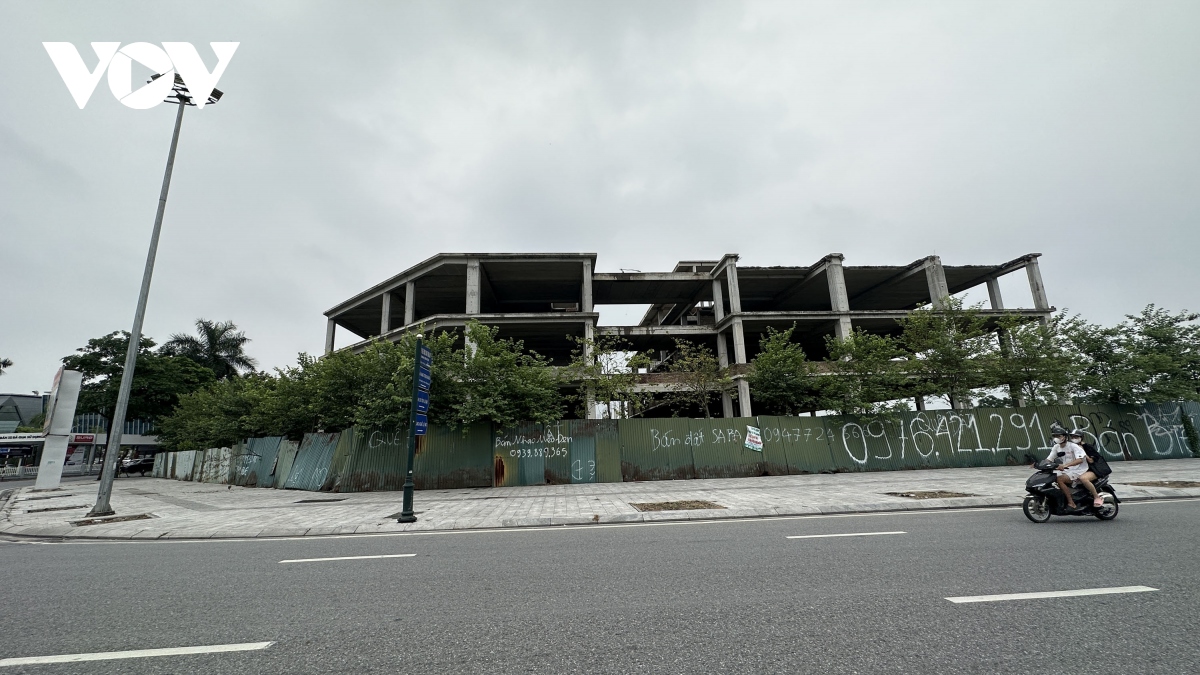 Tương tự trên địa bàn quận Long Biên, nút giao Việt Hưng - Nguyễn Văn Linh là 2 công trình Trung tâm thương thuộc dự án trung tâm thương mại văn phòng và siêu thị Việt Phương. Hàng nghìn m2 đất vàng bỏ hoang cùng công trình xây dựng dở dang.