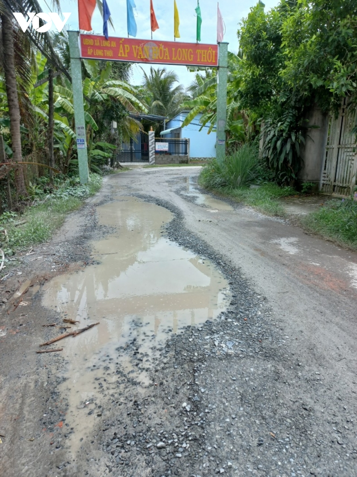 Tại xã Long An, huyện Châu Thành, tuy là xã Nông thôn mới nhưng tuyến đường Ngô Văn Tý xuống cấp từ lâu nhưng vẫn chưa được sửa gây bất ổn giao thông nhất là học sinh đến trường thường xuyên bị té ngã. Anh Nguyễn Văn Khang, người dân xã Long An, huyện Châu Thành tâm tư:“ Đường Ngô Văn Tý xe cả chục tấn mà đường có 3,5 tấn vô hàng ngày luôn ai cũng phàn nàn. Con đường bây giờ bị ổ gà bể hết trơn luôn, mấy đứa trẻ đi xe đạp té luôn, mấy người già đi xe gắn máy ban đêm không để ý cũng bị sụp luôn. Còn học sinh đi học có em bị sụp gãy sườn xe, gãy bánh luôn. Cái đường đó rất đông mà xuống cấp quá học sinh đi học khó khăn. Em đề nghị huyện hay tỉnh sớm làm con đường đó, nâng cấp lên cho sạch đẹp, an toàn giao thông. Xã nông thôn mới là đường cũ, không mới gì hết”.