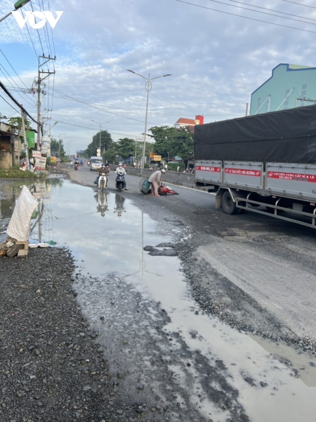 VOV.VN - Hiện nay, bước vào mùa mưa nhiều tuyến giao thông trên địa bàn tỉnh Tiền Giang xuống cấp, hư hỏng nghiêm trọng gây bất ổn về giao thông. Điều đáng nói là đơn vị quản lý và chính quyền các địa phương chậm khắc phục các ổ gà, ổ voi dẫn đến nhiều vụ tai nạn giao thông đáng tiếc