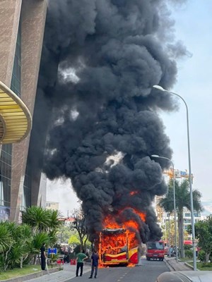 Cháy xe khách ngùn ngụt giữa trung tâm Nha Trang, nhiều người hoảng loạn