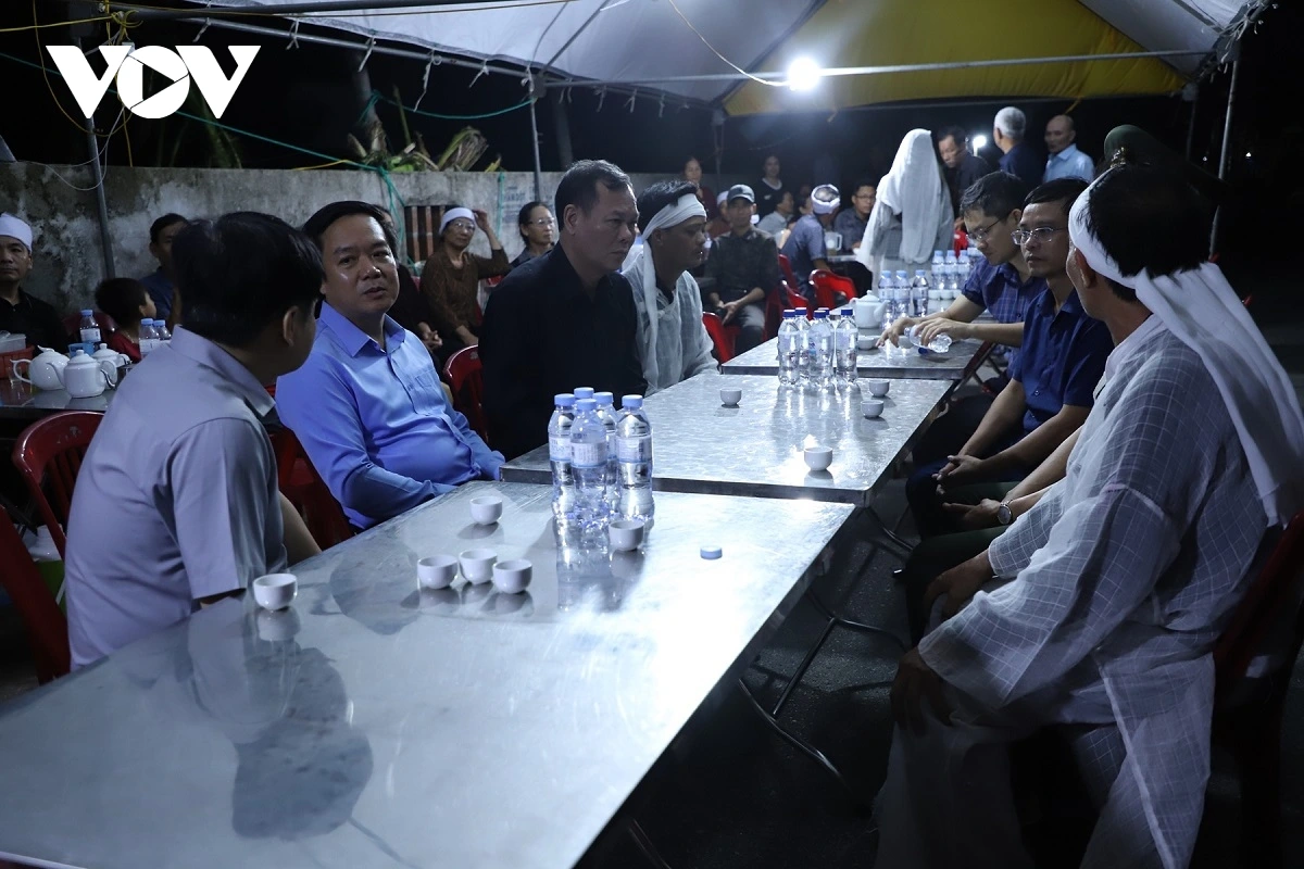 Ông Phạm Quang Ngọc, Chủ tịch UBND tỉnh Ninh Bình (áo xanh) chia buồn với gia đình nạn nhân