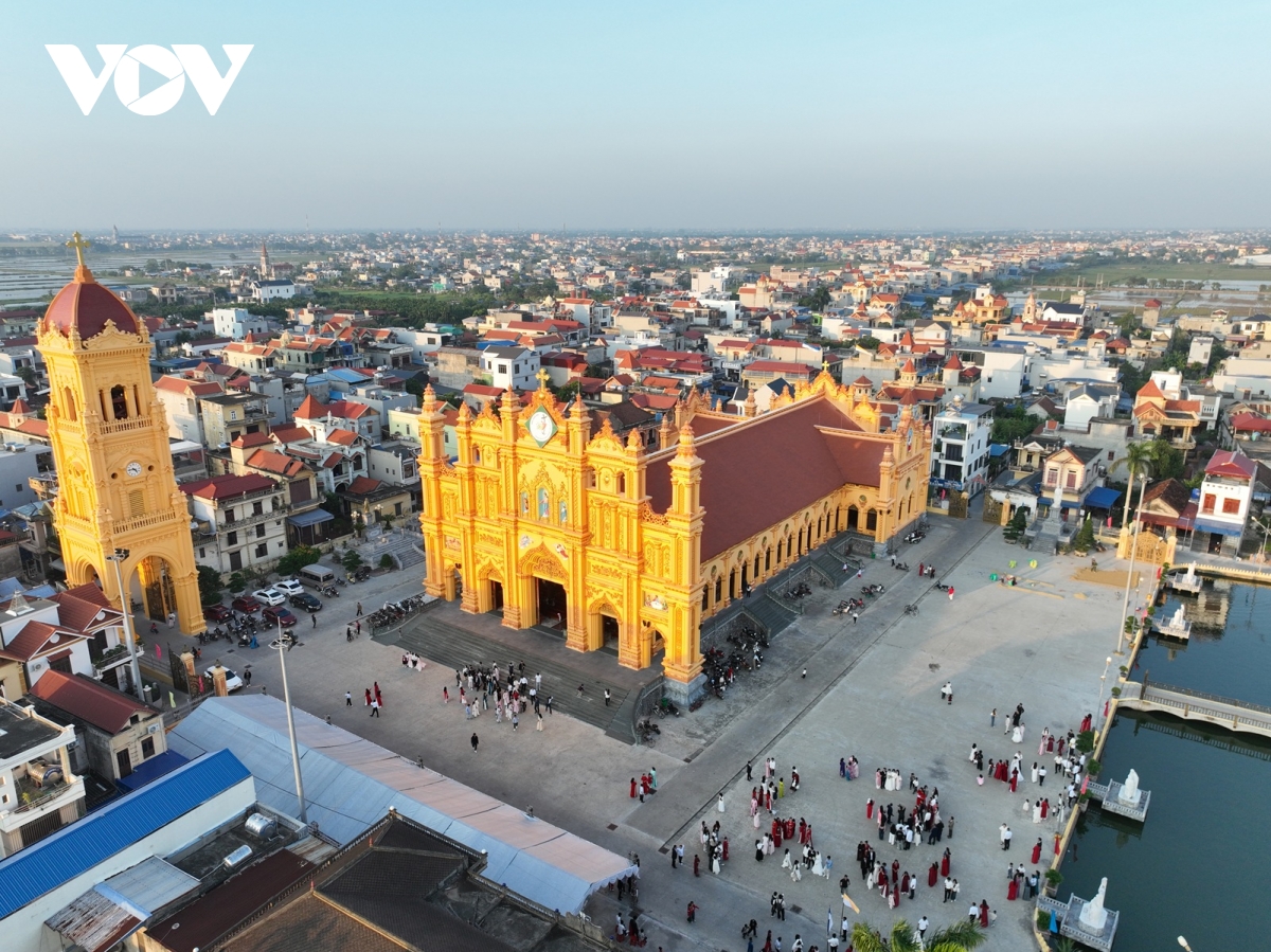 VOV.VN - Giữa vùng đồng bằng trù phú, Đền Thánh Trung Lao, xã Cổ Lễ, tỉnh Ninh Bình nổi bật với tháp chuông uy nghi vươn cao giữa sắc xanh làng mạc. Công trình là điểm nhấn kiến trúc tôn giáo giàu giá trị nghệ thuật và là trung tâm sinh hoạt đức tin của đông đảo giáo dân trong vùng.
