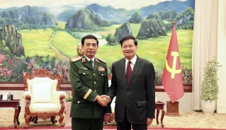 VOV.VN - Sáng nay (15/10), tại thủ đô Vientiane, đoàn đại biểu cấp cao Bộ Quốc phòng ba nước Việt Nam - Lào - Campuchia đã tham dự Diễn tập cứu hộ, cứu nạn chung giữa Quân đội ba nước. Đoàn đại biểu cấp cao Bộ Quốc phòng Việt Nam do Đại tướng Phan Văn Giang, Bộ trưởng Bộ Quốc phòng dẫn đầu.