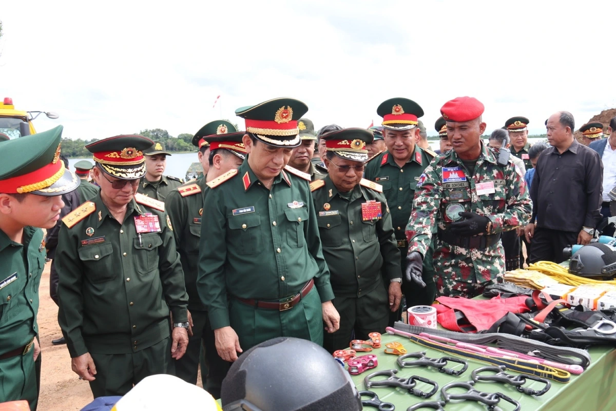 Từ khóa: Việt Nam, Diễn tập tìm kiếm cứu hộ cứu nạn, Quân đội Việt Nam Lào Campuchia, Khắc phục hậu quả thiên tai, Lũ lụt sạt lở đất, Cứu nạn người gặp nạn, Hợp tác quốc phòng ba nước, Đại tướng Phan Văn Giang, Đại tướng Chansamone Chanyalath, Đại tướng Tea Seiha, Bệnh viện dã chiến, Máy bay không người lái, Trực thăng cứu hộ.