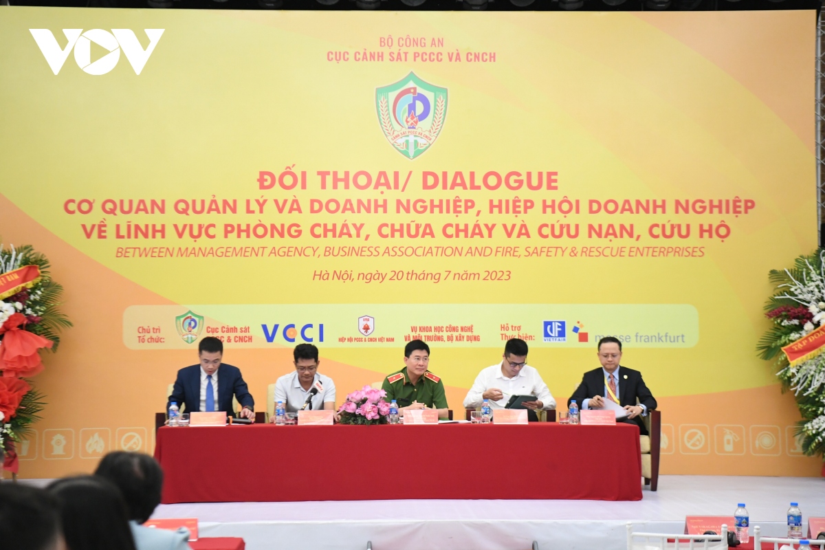 Ngày 20/7, tại Hà Nội, trong khuôn khổ Triển lãm quốc tế về phòng cháy, chữa cháy, Cục Cảnh sát Phòng cháy, chữa cháy và cứu nạn cứu hộ (Bộ Công an) đã cùng với các đơn vị chức năng của Bộ Xây dựng, Liên đoàn Thương mại công nghiệp Việt Nam (VCCI), Hiệp hội Phòng cháy, chữa cháy và cứu nạn, cứu hộ đã đối thoại trực tiếp với gần 300 doanh nghiệp, hiệp hội doanh nghiệp, ngành nghề trong và ngoài nước để nhằm giải đáp các vướng mắc, tháo gỡ khó khăn trong lĩnh vực phòng cháy, chữa cháy.
